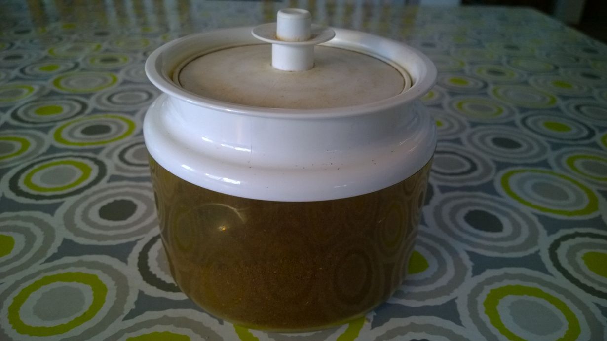 Tämä äidiltäni saatu Tupperwaren kahvipurkki on mukanani kulkenut yli 20 vuoden ajan. Tuskin monikaan nykyisin käytössäni olevista tavaroista on nähnyt taannoiset opiskeluasunnotkin! Mutta tämä on! Ja aina vaan on käytössä.