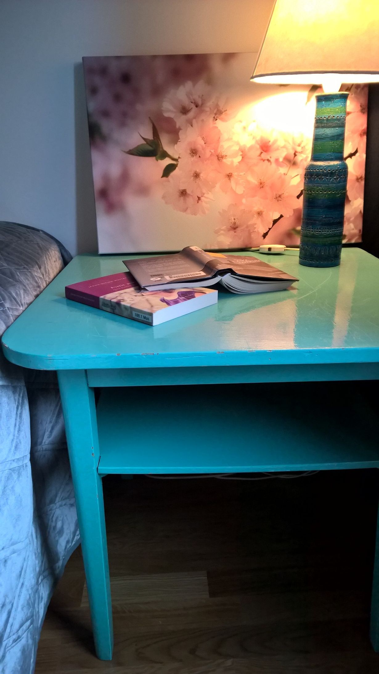 Tämä ihana arki: yöpöytä Turkoosi 12.7.2015 klo 18:56 Kirppislöytö, jonka halkeilevaan maalipintaan ei raaski kajota.