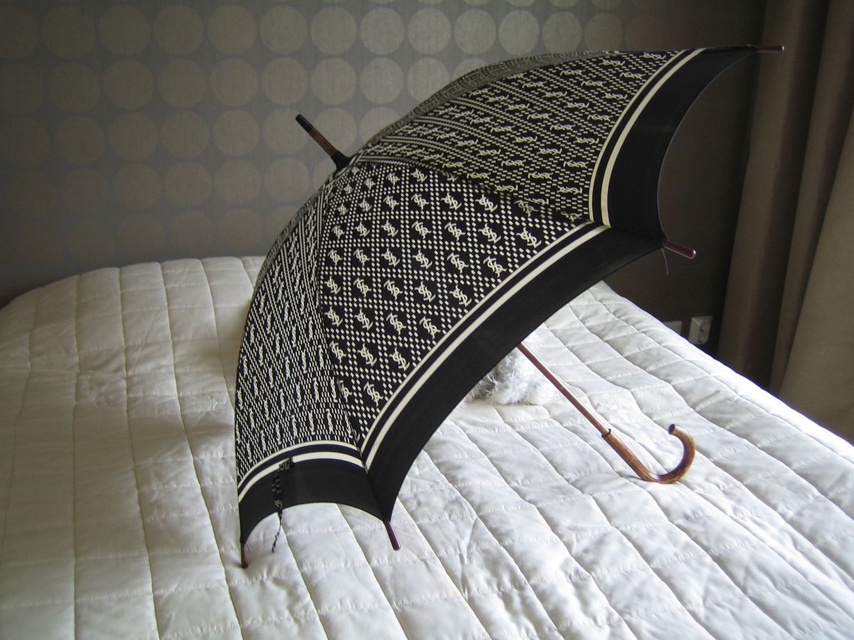 Lähes 30 vuotta sitten ensimmäiseltä ulkomaanmatkaltani ostettu sateenvarjo on ollut suojanani monissa sateissa ja myrskyissä. Kulkee edelleen mukana varavarjona auton takakontissa.