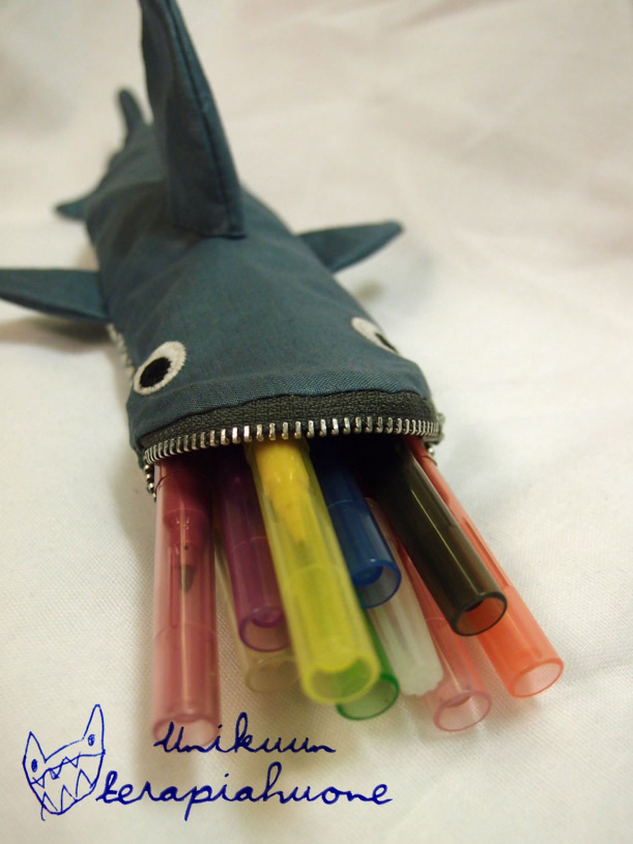 Tein pojalleni hain muotoisen penalin. Enemmän kuvia blogista: http://terapiahuone.blogspot.fi/2013/03/tussihai.html
