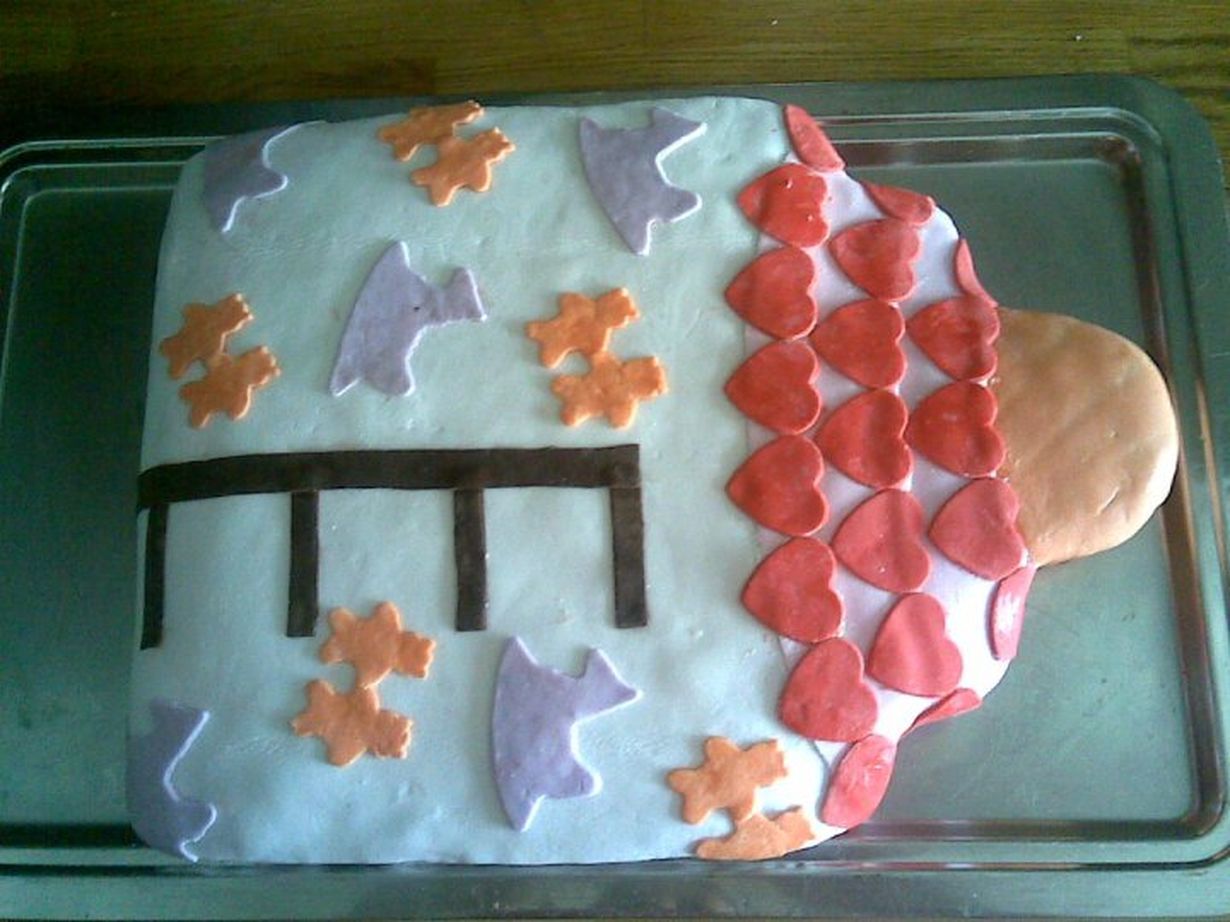Minulta tilattiin tuttavani kummitytön ristiäisiin kakku. Sain vapaat kädet tehdä kakun ja tässä lopputulos. Lapsen vanhemmat ja tuttavani olivat erittäin tyytyväisiä lopputulokseen.