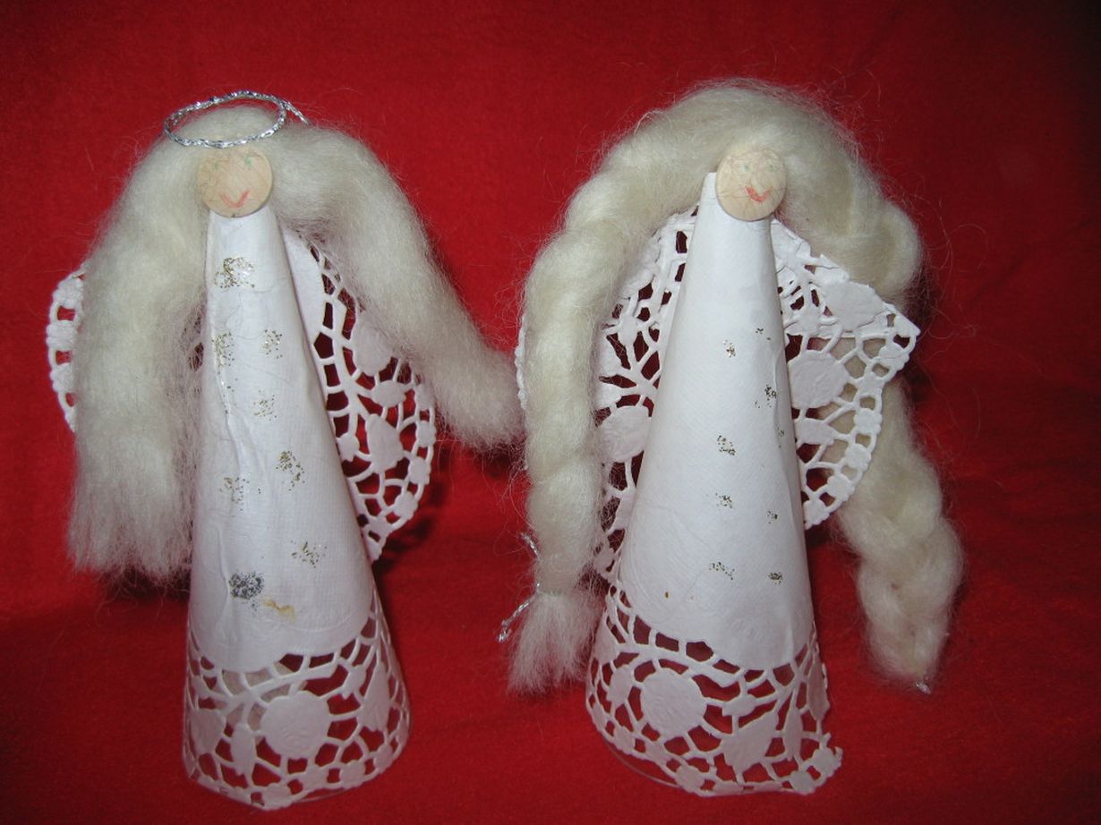 Joka joulu pöytäämme koristaa tyttäreni 7-vuotiaana tekemät suloiset enkelit. Vuodesta vuoteen ne ovat olleet esillä ja joka kerta niitä katsoessa tulee oikea joulufiilis!