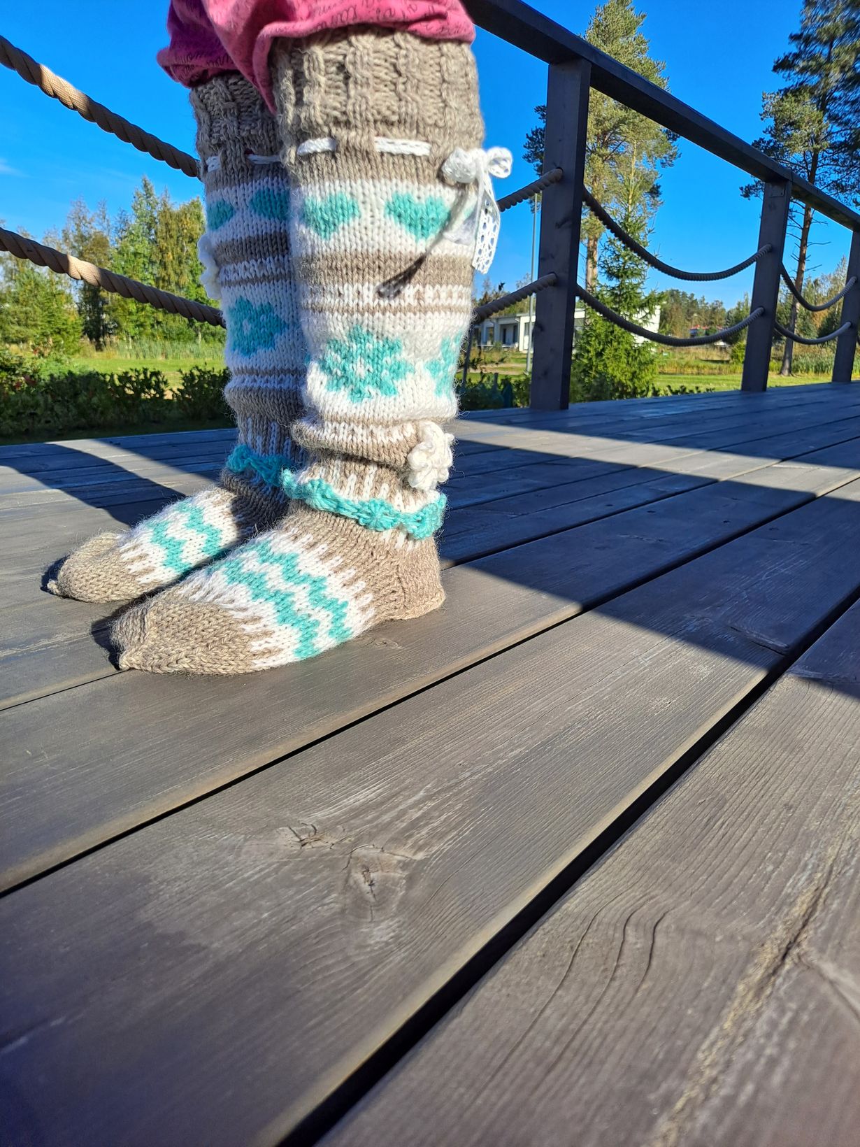 Lähetä kuvakisaan kuva villasukistasi - voita Familonin peitto ja tyyny! Tyttärelle sukkaset Aippa 23.8.2022 klo 11:46 Tein tyttärelle villasukat ja niistä tuli niin kivat, ettei hän melkein raskinut käyttää.