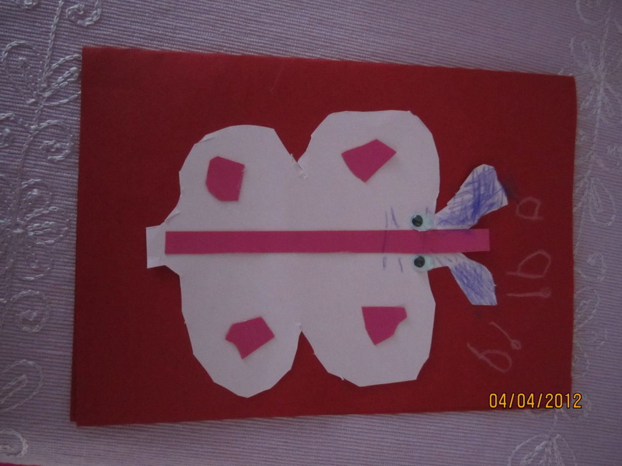Tyttäreni oli alle 4 vuotias, kun hän kerhossa askarteli tämän kortin minulle, tämä on niitä ensimmäisiä itsetehtyjä kortteja äidille ja olin aivan liikuttunut ja kortti on tallessa vauvamuistojen kansiossa.