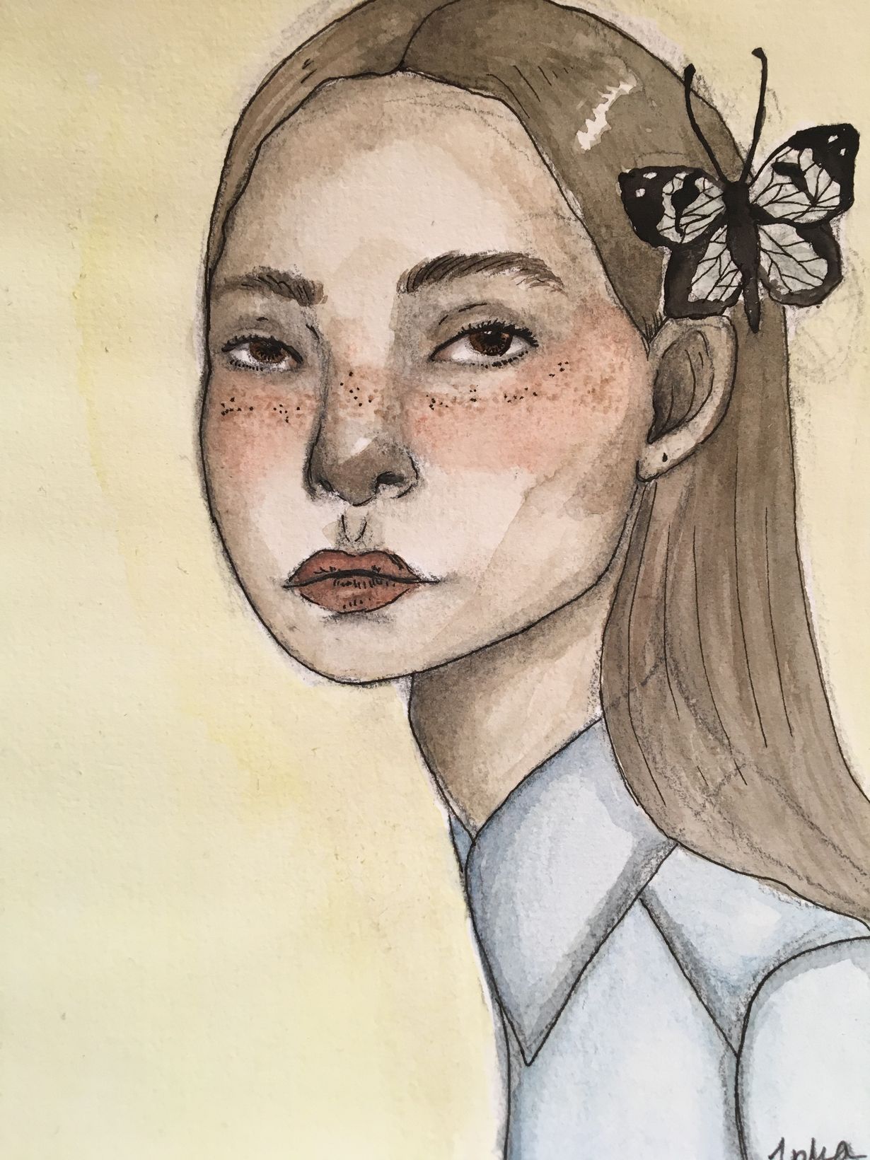 Lähetä kuva hienoimmasta piirustuksestasi – voit voittaa Arabian Pastoraali-astioita! Tyttö ja perhonen Inka 5.4.2020 klo 17:43 Tein piirustuksen aurinkoisena päivänä, jonka takia perhonen pääsi tytön hiuksiin.