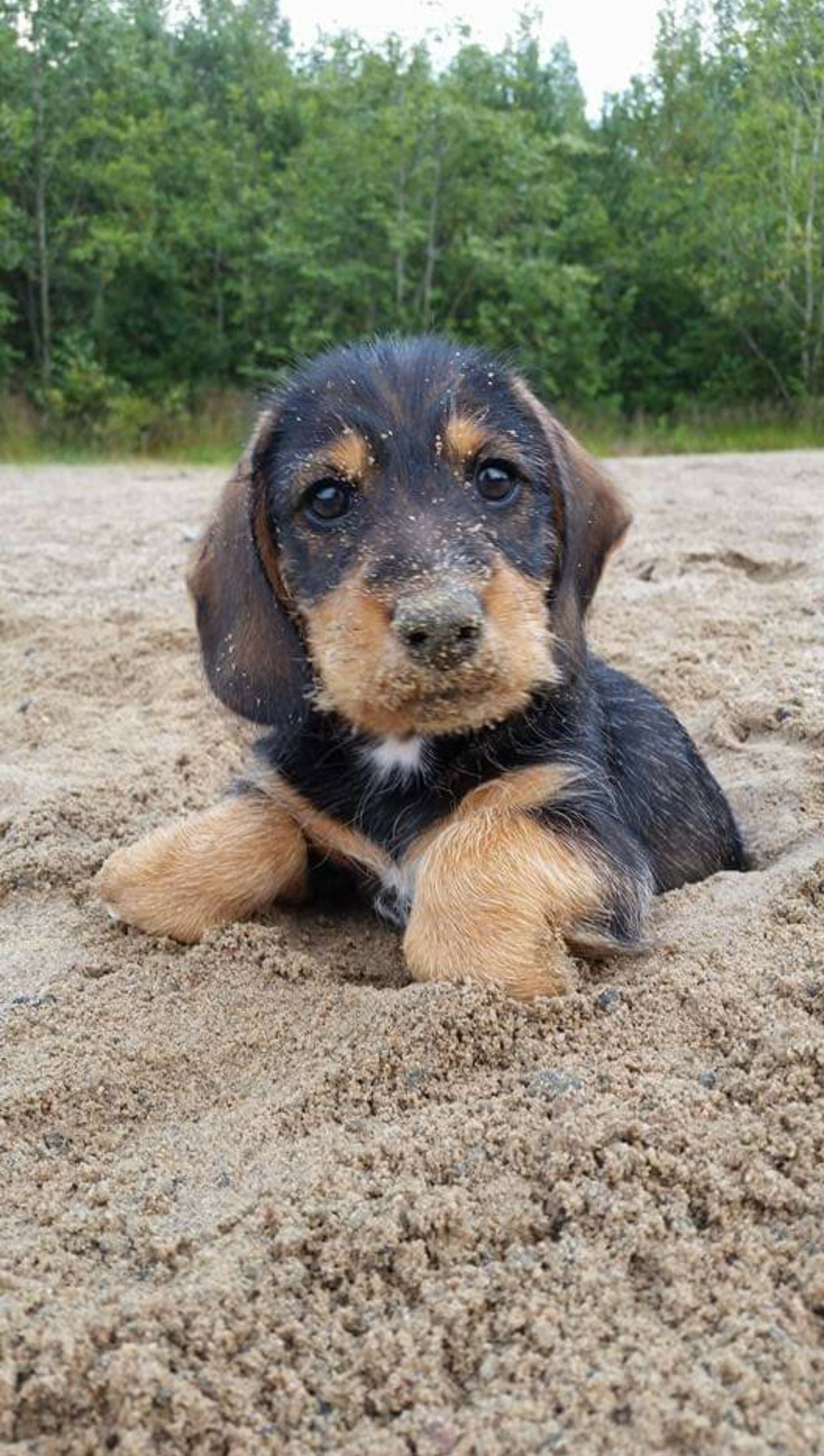 Tyyne Makkarainen oli ollut meillä pari viikkoa, kun menimme rannalle. Hän kaivoi itselleen kuopan ja meni sinne viilentymään.