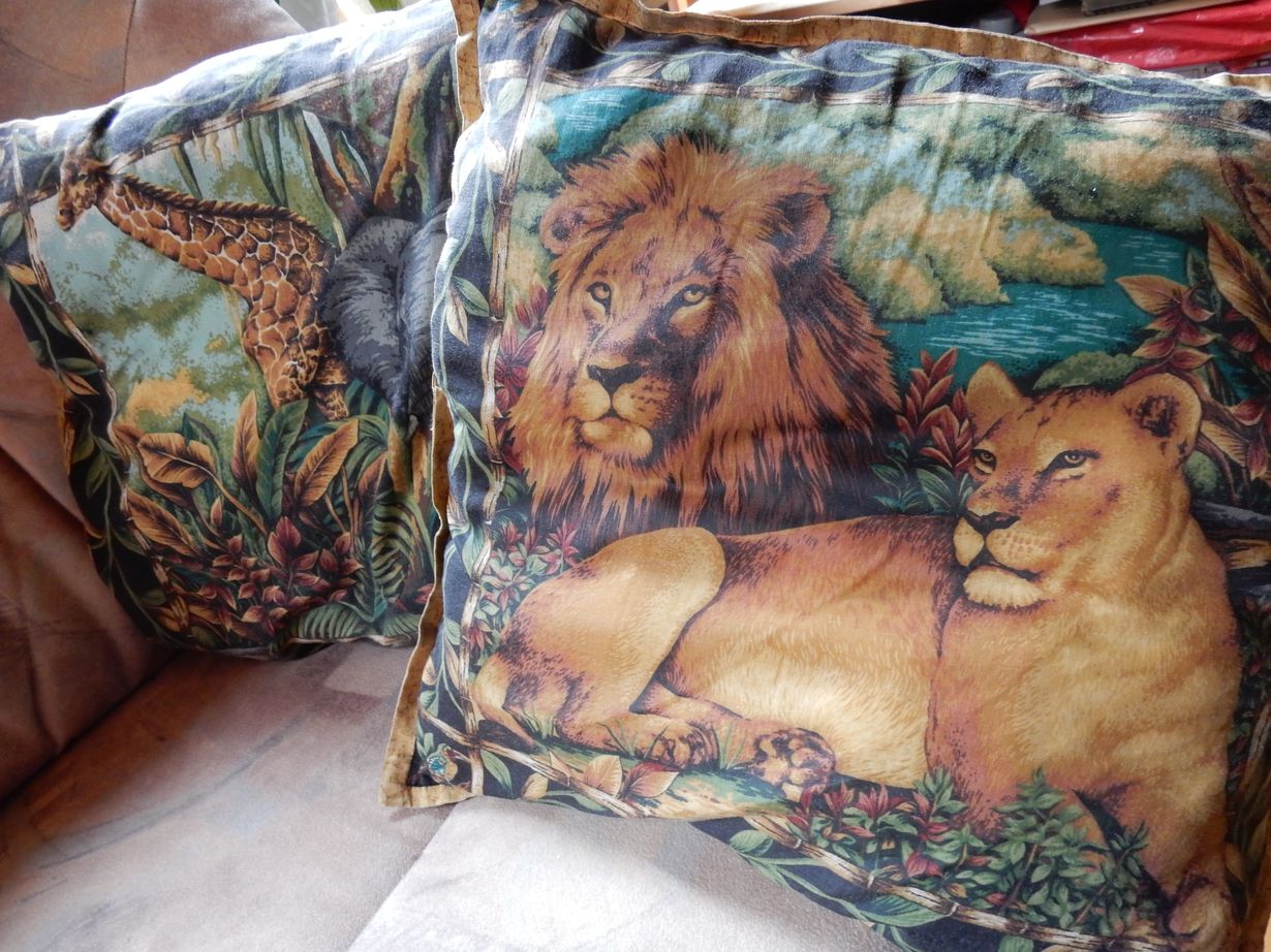 Ostin palakaupasta kankaan ja tein Afrikka-aiheisen tyynyn.