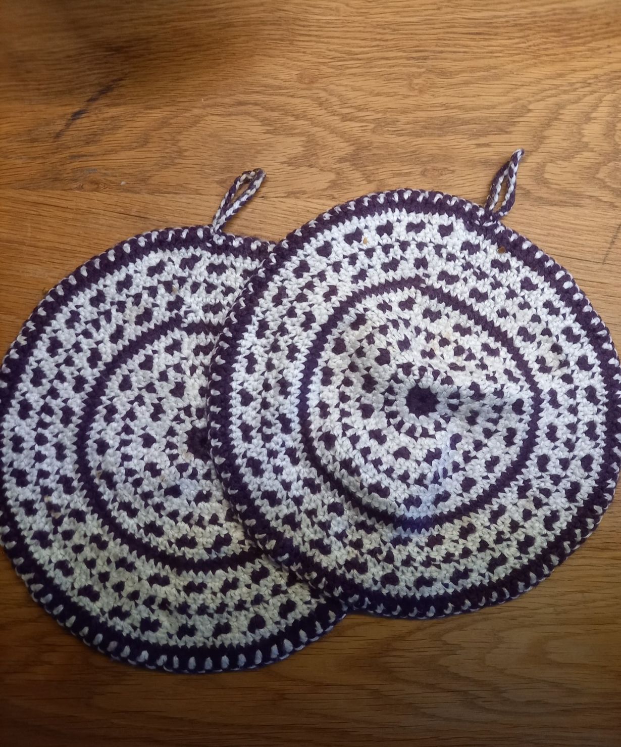 Olimme vajaa 10 vuotta sitten lasten kanssa uimahallin pukuhuoneessa pukeutumassa sellaisen härdellin kanssa, jonka jokainen vanhempi tunnistanee. Viereisellä pukukaapilla ollut vanhempi rouva ojensi minulle yhtäkkiä nämä patalaput ja toivotti hyvää syksyn jatkoa. Patalappujen mukana oli mietelauselappunenkin, mutta sen olen hukannut.