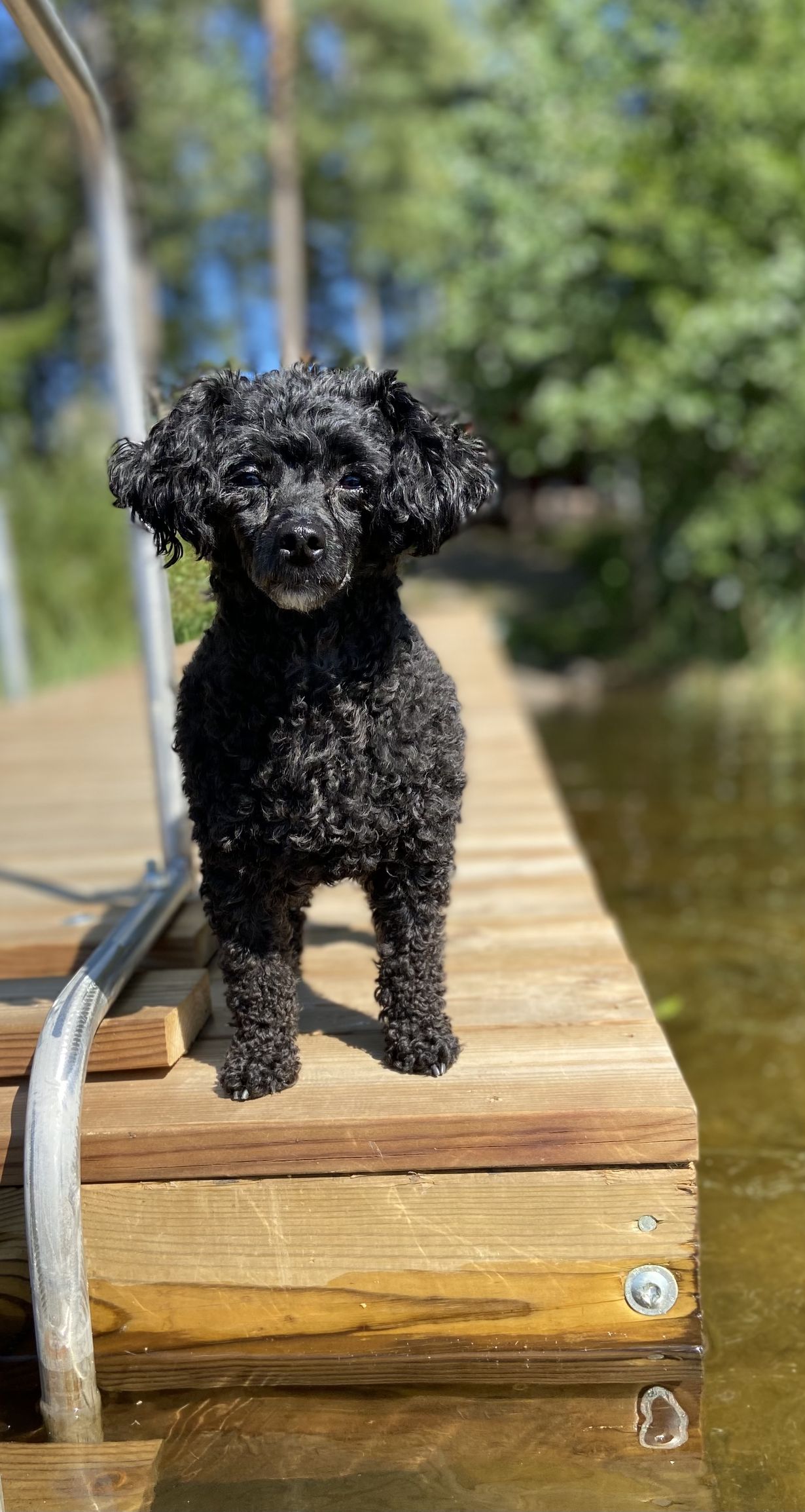 Mimmi seuraa tarkasti uimistani. Hän on valmiina hyppäämään perääni, jos uin liian kauaksi.