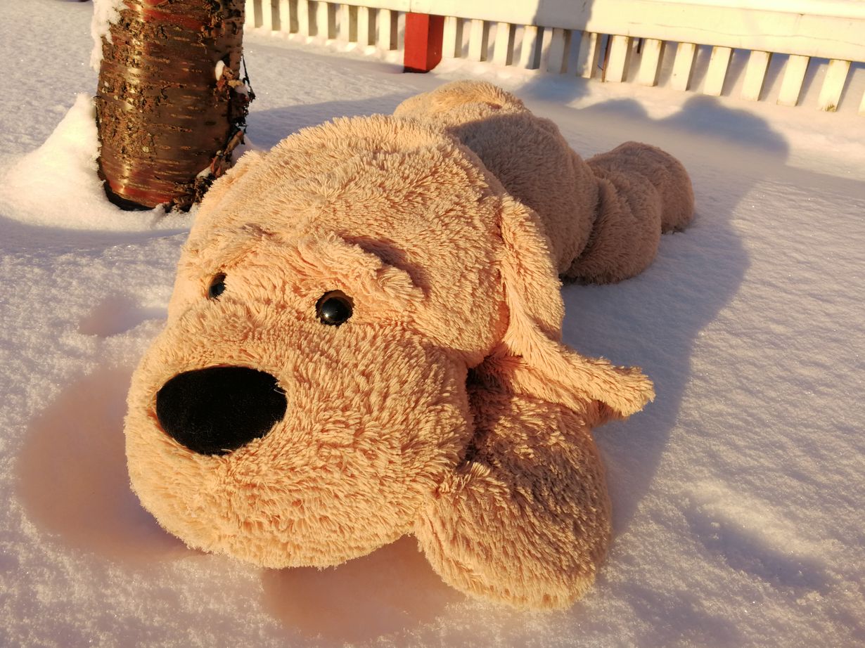 Tätä unikaveria piiloteltiin auton peräkontissa ennen kuin annoimme sen pojallemme syntymäpäivälahjaksi. Ilmankos unikaveri tykkää nykyäänkin matkustaa autossa mukana milloin missäkin.
