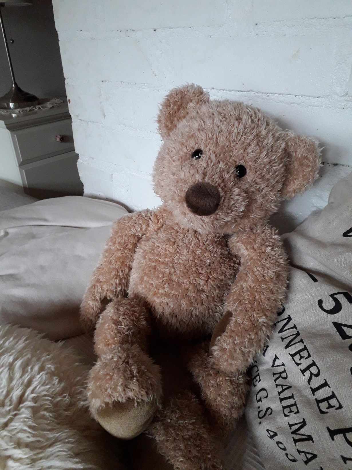Sain nallen perinnöksi edesmenneeltä mummiltani. Nalle istui mummilan sohvalla, ja aina kulkiessaan ohi mummi pysähtyi silittämään sen päätä. Kun ikävä yllättää, nalle pääsee viereen nukkumaan. Rutistan nallea ja toivon lempiuntani: mummilan nurmikkoa ja sinistä taivasta.