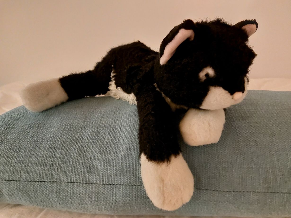 Tyttären n 25v unikaveri Saara-kissa edelleen sängynpäällä.