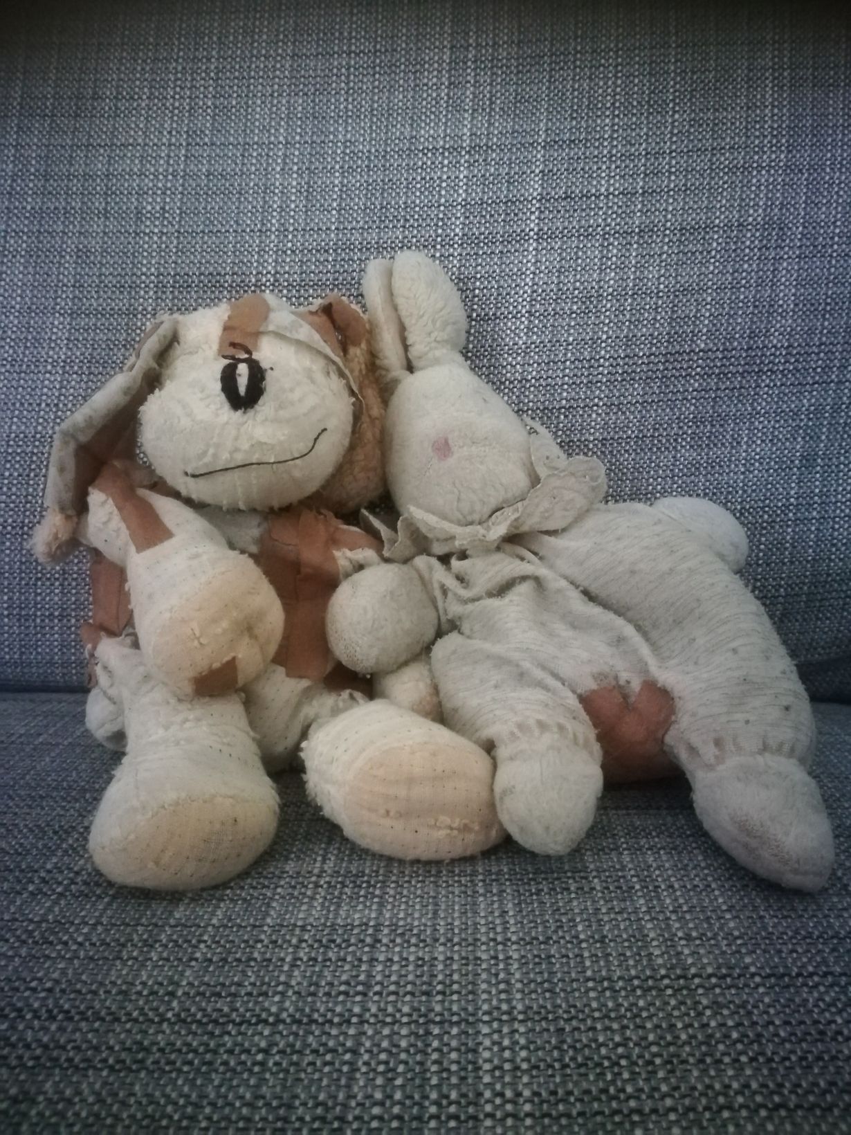 Kuvassa on meidän lasten unikaverit. Tassu-koiran omistaja on tosin jo 18-vuotias ja hoitovastuu on siirtynyt 9-vuotiaalle pikkusiskolle. Tutu, Aino-pupu on ollut tyttäremme vieressä ihan vauva-ajoista asti. Edelleen aamu alkaa Tutun rutistelulla ja samoin uni tulee Tutua rutisteltaessa. Pestä näitä ei juurikaan enää uskalla eikä paikata muuta kuin laastareilla ja haavateipillä. Tutu on matkustanut mukanamme ympäri maailmaa ja itku tuli aina kun Tutu joutui lentokentällä läpivalaisuun. Päiväkodissa Tutu kulki myös joka päivä mukana.