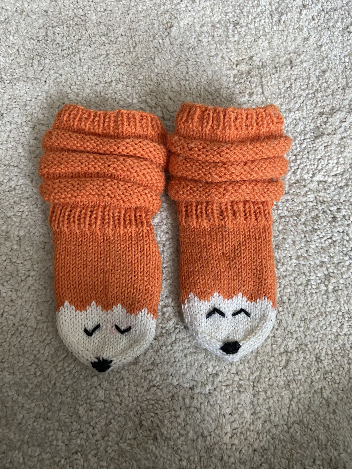 Siskoni teki meidän pojalle ihanimmat kettusukat, joista toinen kettu nukkuu ja toinen on hereillä. Sukat on pojalle tosi tärkeät ja hän mielellään pukee ne myös nukkumaan mennessä unisukiksi <3