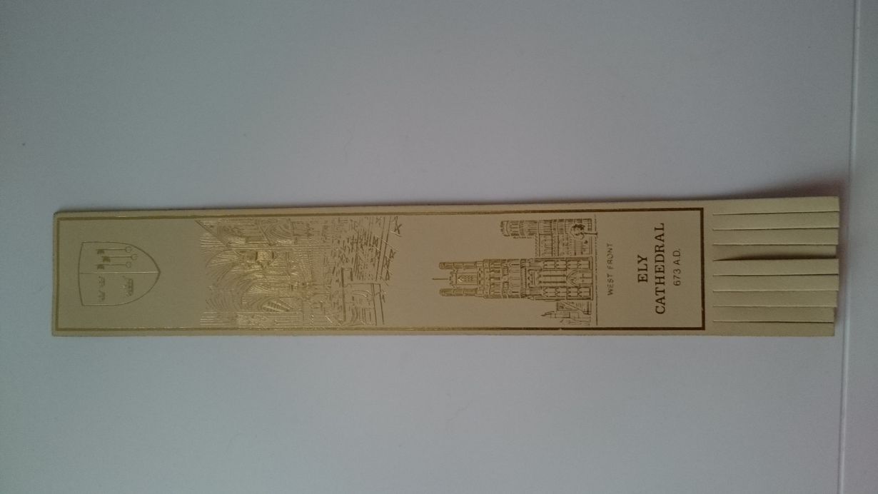 Olin vuonna 1996 vierailulla Englannissa asuvan tyttäreni luona ja kävimme Elyn Cathedralissa, mistä ostin tämän upean kirjanmerkin !!!