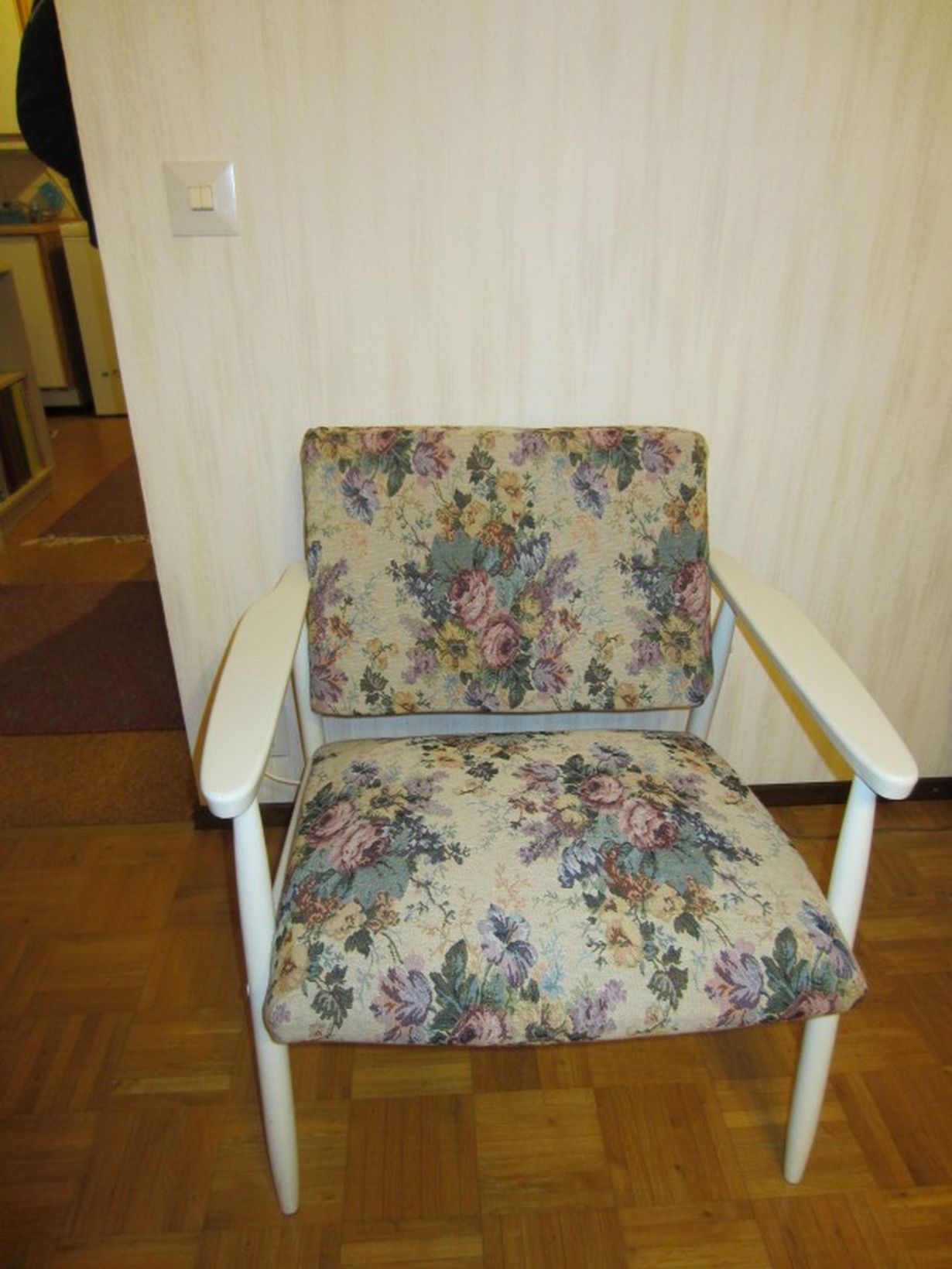 Tuoli otettu käyttöön v.1972. Ollut sitten yli 30 vuotta poikamieskämpän lempituolina. Avioitumiseni jälkeen seurannut muutossa nykyiseen asuntoomme. Tuolin kangaspäällysteet on rikkikuluneina uusittu kolmeen kertaan ja myös puuosat ovat kerran maalattu. Tuoli on edelleen hyvässä kunnossa ja istuma-asento on siinä varsin miellyttävä.
