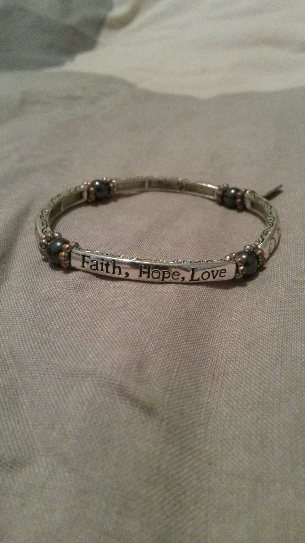 Äitin kanssa ostettiin magneettirannekorut, minulla teksti Faith, Hope, Love ja äitillä Carpe Diem. Terveysvaikutuksista en tiedä, mutta ainakin mieli rauhoittuu kun pidän tätä ranteessani.