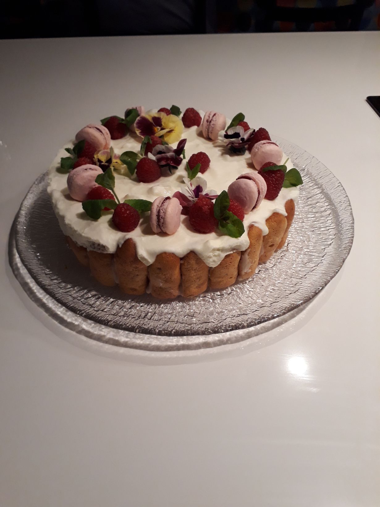 Kuohuva punaherukka-moussekakku. Ohje on Jenni Höijerin Sokerileipurin salaisuudet kirjasta. Olen jo pitkään halunnut tehdä ko kakun. Tein jouluksi macaronseja, joita jäi, niin siitä se ajatus sitten lähti. Punaherukat on itse kerätty anopin puskista.