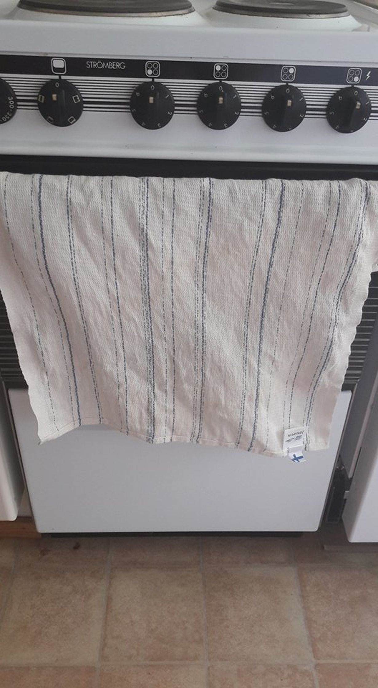 Muutin hetki sitten uuteen isompaan ja parempaan kotiin. Hella on puolet isompi ja toimii tehokkaaammin. Keittiöpyyhe on Suomalainen Jokipiin pellavapyyhe.