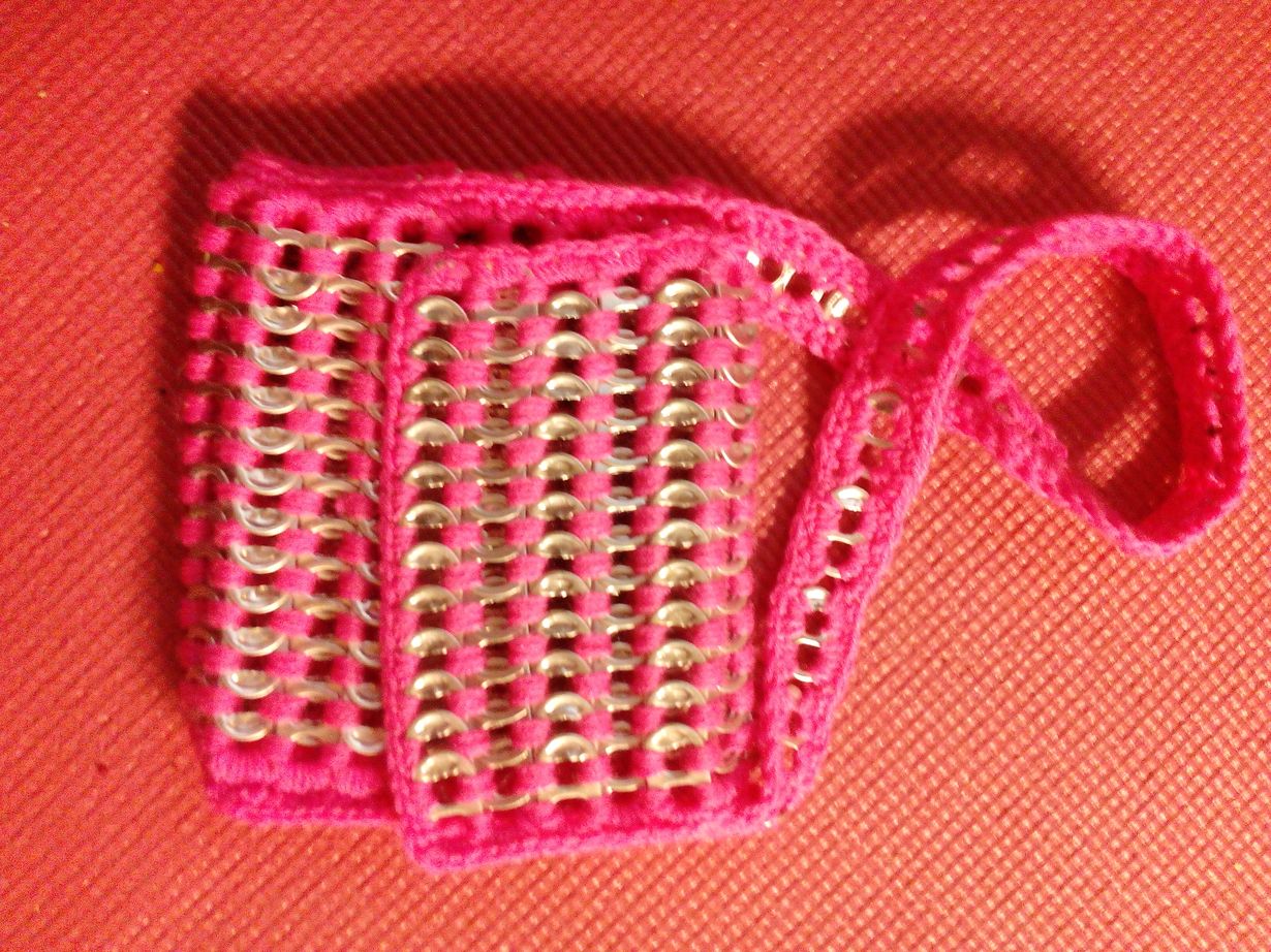 Lähetä kuvakisaan kuva itse tehdystä lahjasta – voit voittaa 200 euron NOSH-lahjakortin vaaleanpunainen laukku elli 22.10.2020 klo 6:50 vaaleanpunaien nipsuista ja sekoitelangasta virkattu laukku