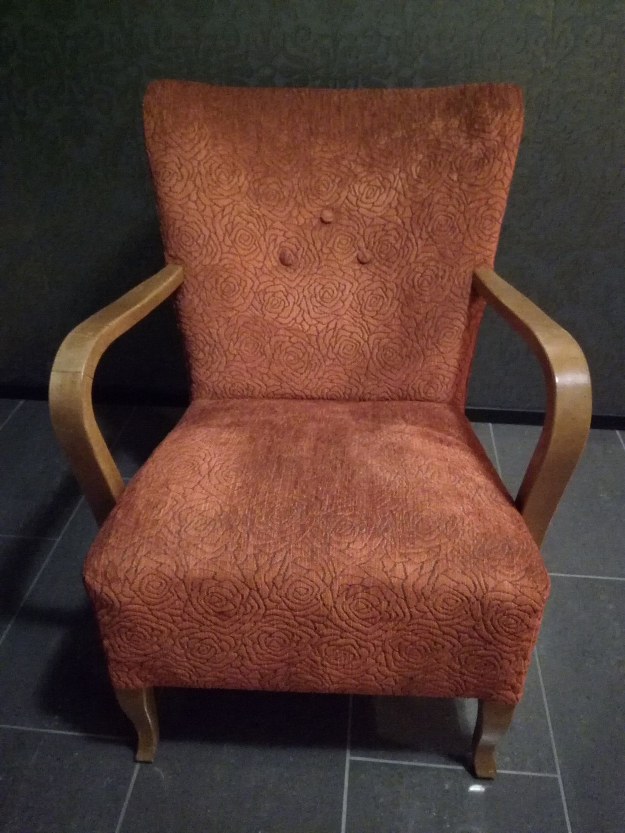 Vaarin vanha nojatuoli löytyi aitan perältä ja oli vähällä päätyä kaatopaikalle. Uuden verhoilun myötä tuoli puhkesi uuteen kukoistukseen ❤