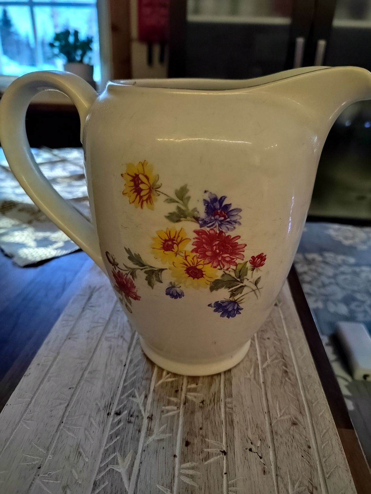 Yli-Iin Syrjälän kylän mökiltä sain vaarin ja mummon kihlajaiskannun (Arabiaa 40-luvulta)perinnöksi. Poimin kesäisin aina kedon kukkia heidän muistoksi.
