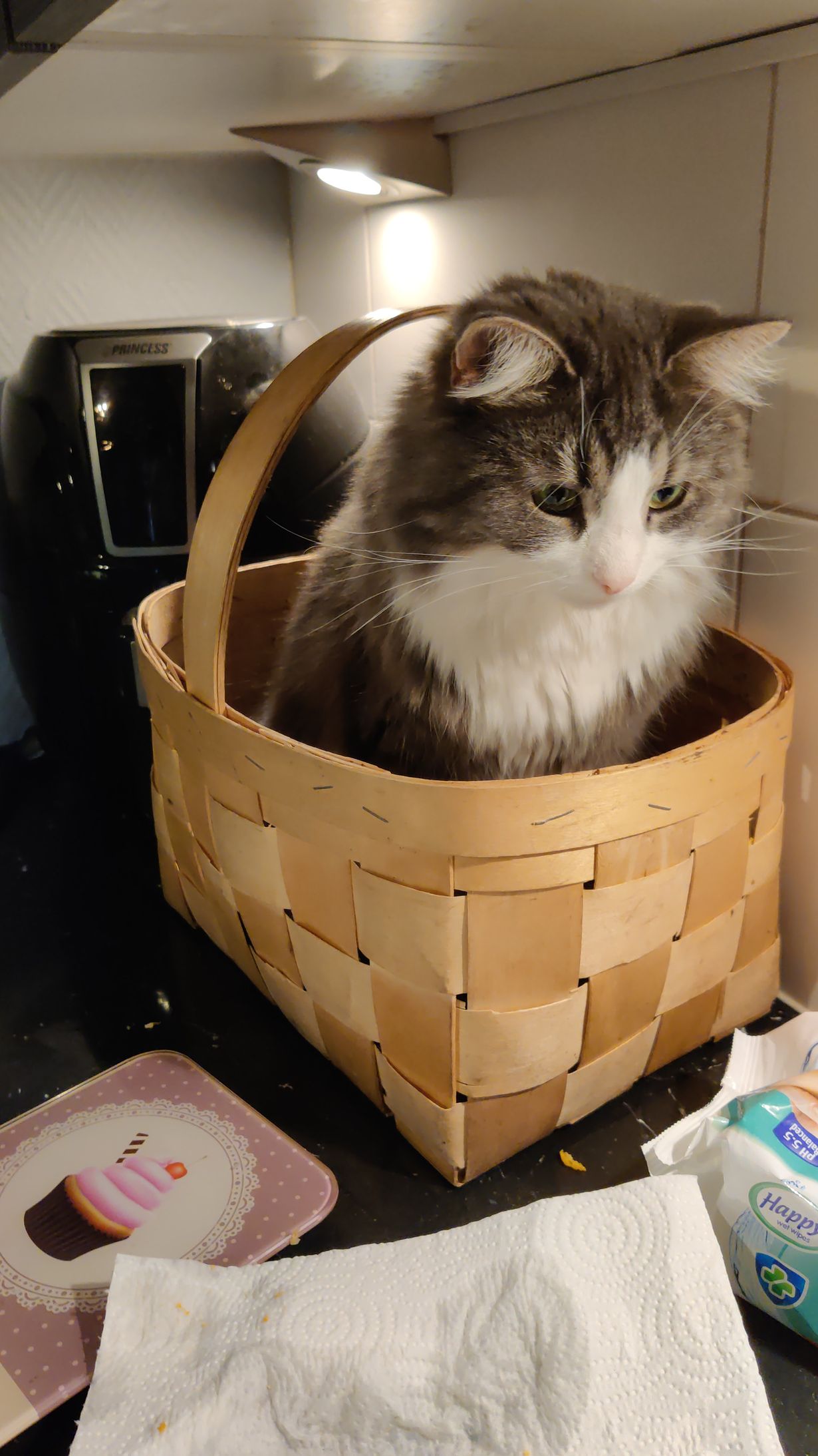 Sienimetsästä saavuttu kotiin, sienet altaassa puhdistusta odottavat. Neiti Jade vahtii että kaikki tulee kunnolla puhtaaksi