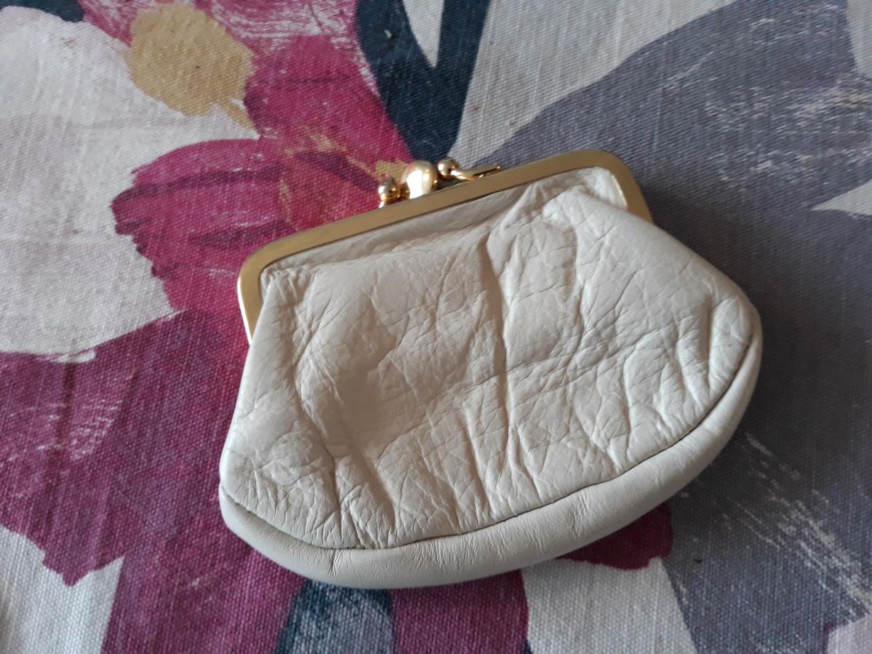Tämä on äitini vanha kolikkokukkaro. Aion ottaa sen käyttöön. Siinä on 2 osaa. Toiseen puoleen voi laittaa vaikka kolikot ja toiseen puoleen setelit.