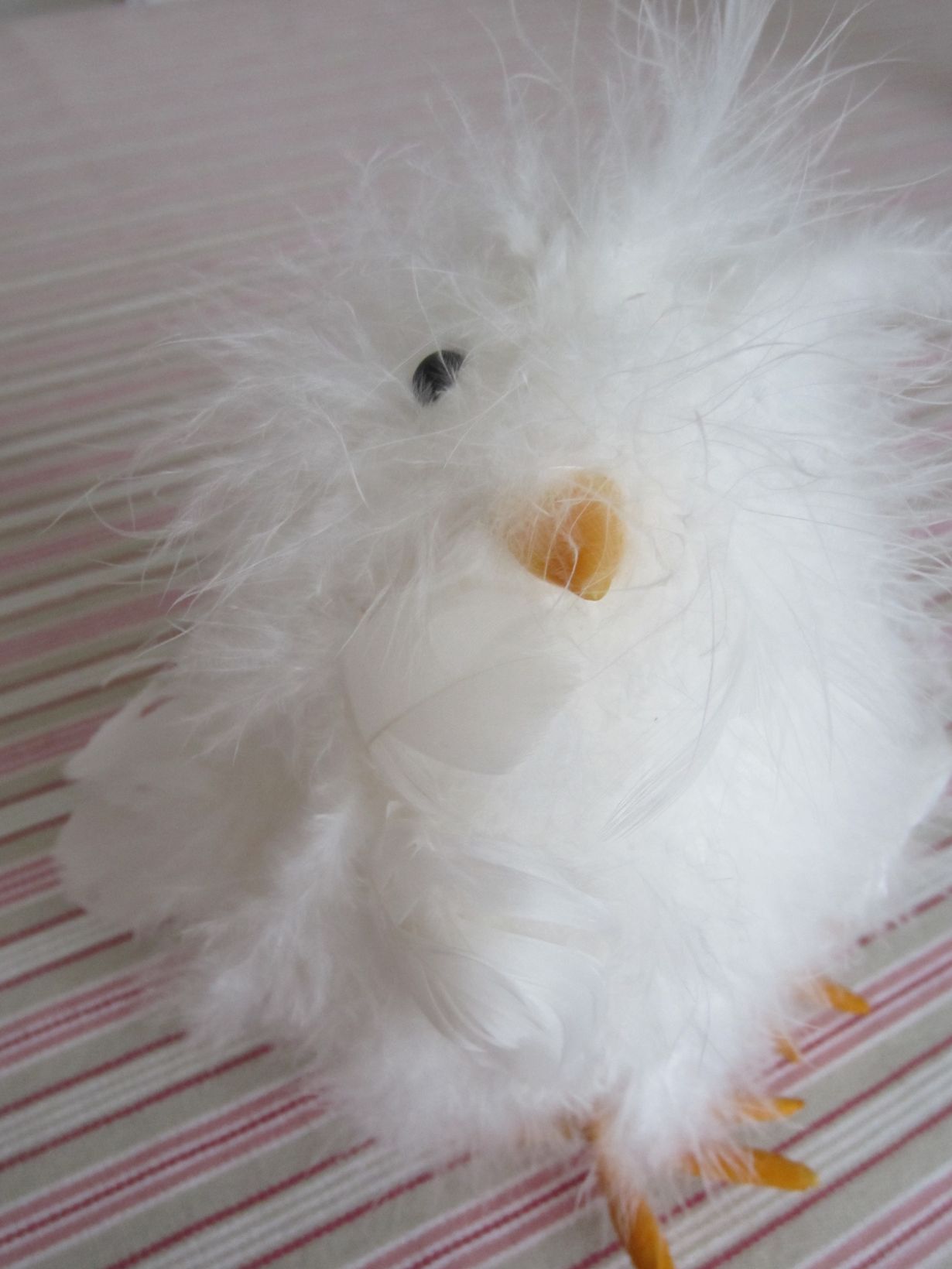Valkoinen tipu on ensimmäisiä pääsiäiskoristeita, jotka olen ostanut n 20 vuotta sitten omaan kotiini, mutta edelleen siinä on höyhenet tallella, joskis hieman sekaisin.