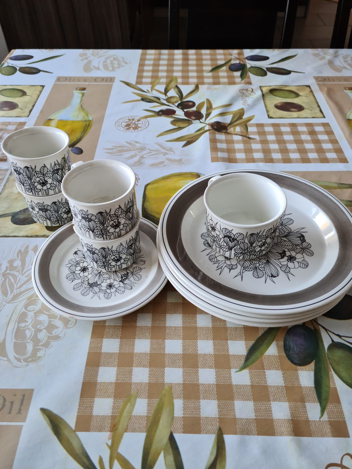 Sain Arabian krookuasastiaston 46v sitten ylioppilaslahjaksi. Astiat ovat kulkeneet mukana ja nämä ovat enää jäljellä. Kahvikupit ovat erinomaiset mittakupit mm Masaliisaa leipoessa, eilen leivottiin lastenlasten kanssa.