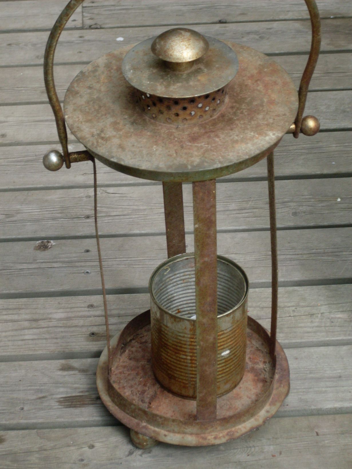 Vanha kovia kokenut pihalyhty, jossa ollut lasilieriö kynttilää varten, sai sisukseensa vanhan ruostuneen kurkkupurkin. Laitoin sinne Juhannuksenakin pienen lyhtykynttilän ja maitohinkkiin juhannuskoivun!