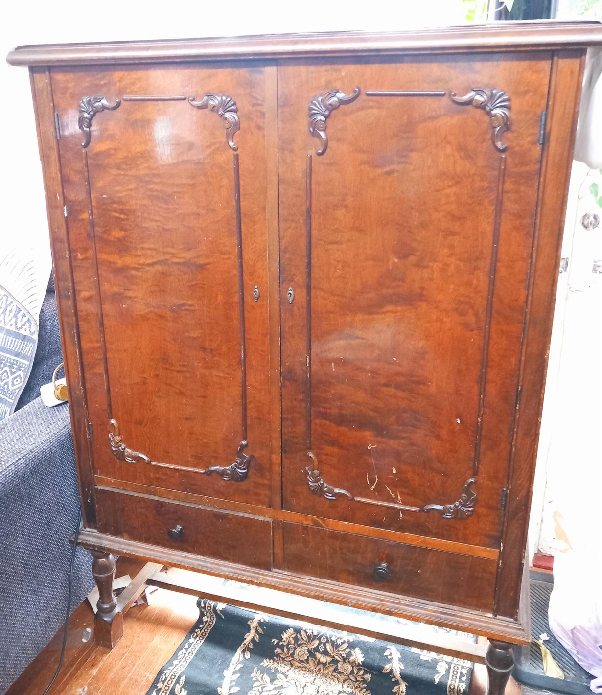 Vintagekaappini lienee alunperin astiakaappi. Säilytän siellä albumeita, juhla-aikojen koristeita kuten pääsiäisen posliinipupuja, kynttilänjalkoja ja isoa pääsiäiskukkoa. Siellä on myös joulun posliinikarusellit ja keramiikkatontut.