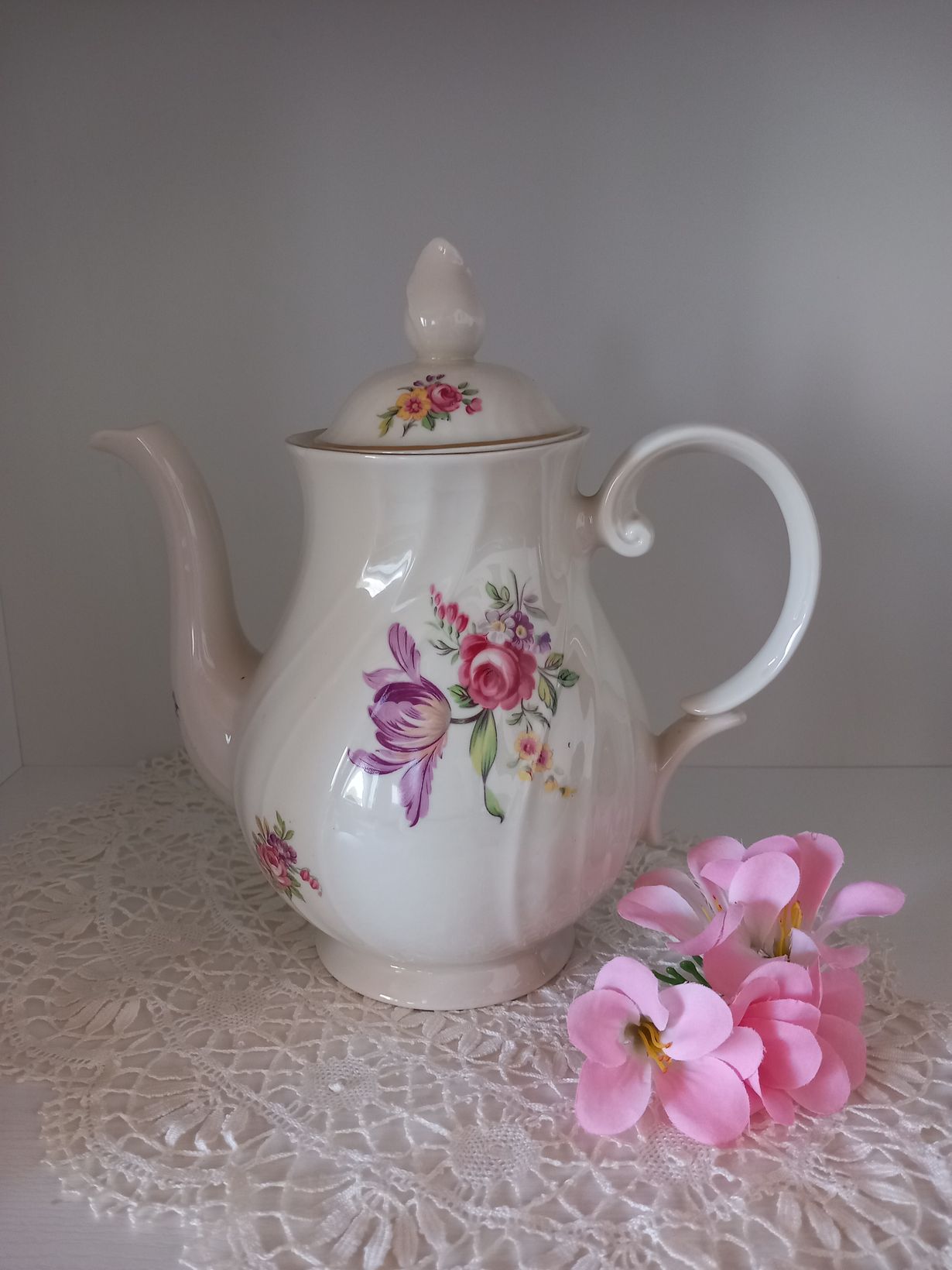 Vanha kahvikannu on vanhempieni nuoruuden ajoilta. Tätä Arabian sarjaa on meillä jäljellä enää tämä ihana kannu, kermakko ja muutama asetti. Muut ovat aikojen kuluessa särkyneet.