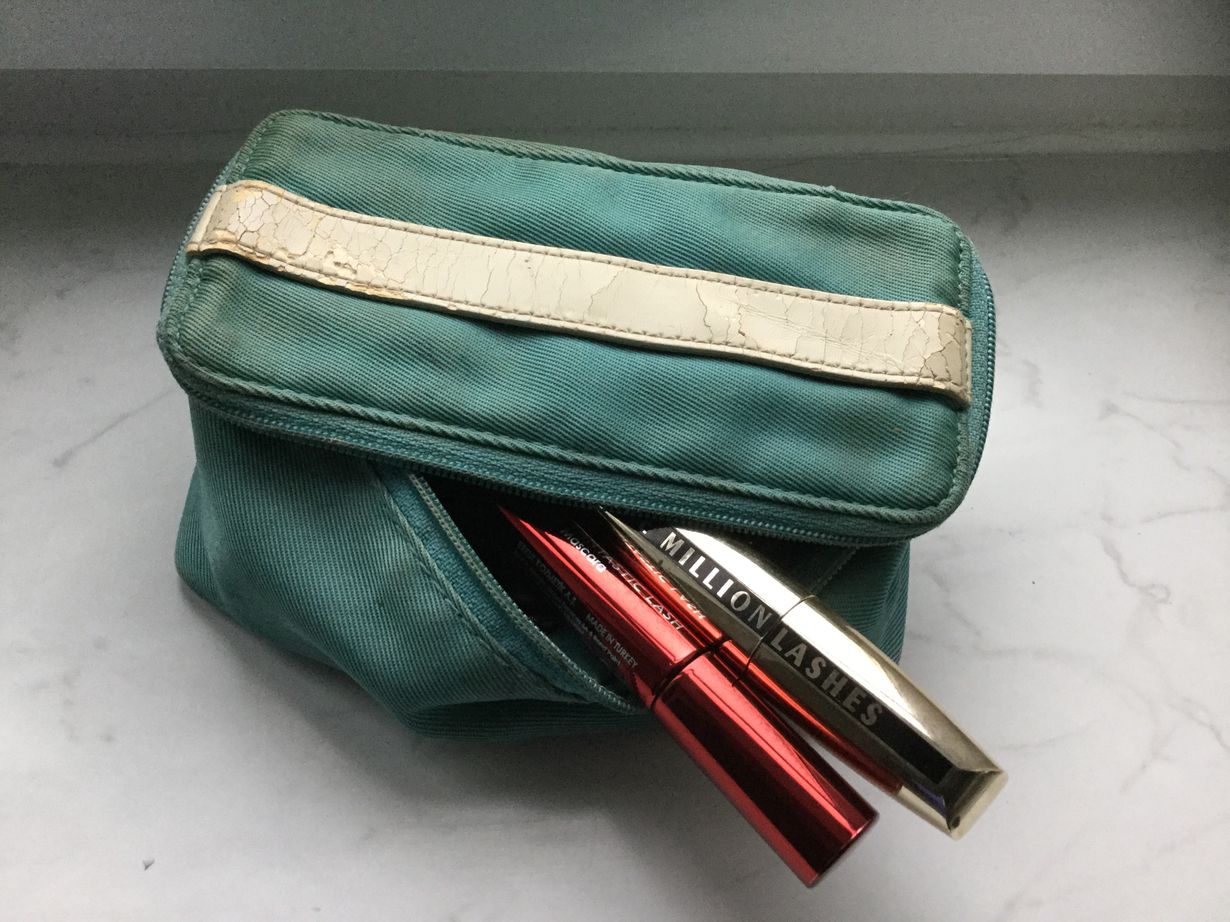 Tämä vanha palvelija on kulkenut mukana jo ikuisuuksia. Sisään mahtuu meikit, ja pussukka itse mahtuu hyvin vaikka käsimatkatavaroihin. Ostettu Bremenistä, asuu nykyisin Traunsteinissa ja matkustaa joka kesä Kuopioon.