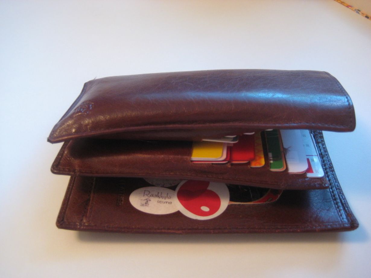 Lukematon määrä bonus-, pankki- ja henkilökortteja, liimatut lastenlasten valokuvat, museoista saadut maksutarrat on myös liimattu kolikkotaskun kylkeen. Ja joskus muös rahaa. Palvellut vuosia, enkä ole löytänyt toista yhtä mahtuvaa.