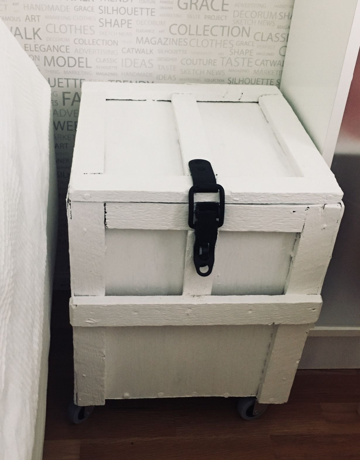 Löysin Roskalava-palstalta ruskean pienen arkun.Sen metalliosat olivat ruosteessa.Tein siitä isommalle tyttärelleni yöpöydän.