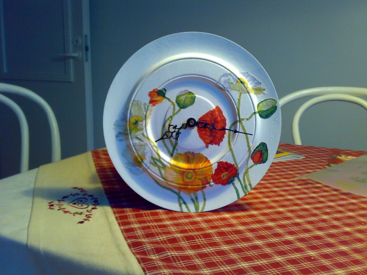 Joskus 1970-luvulla lahjaksi saatu sorvatulle puulautaselle koottu kello toimi moitteetta, mutta kylmässä siirtolapuutarhamökissa olivat kaikki numerot kadonneet ja muutenkin se oli kovin ankea.