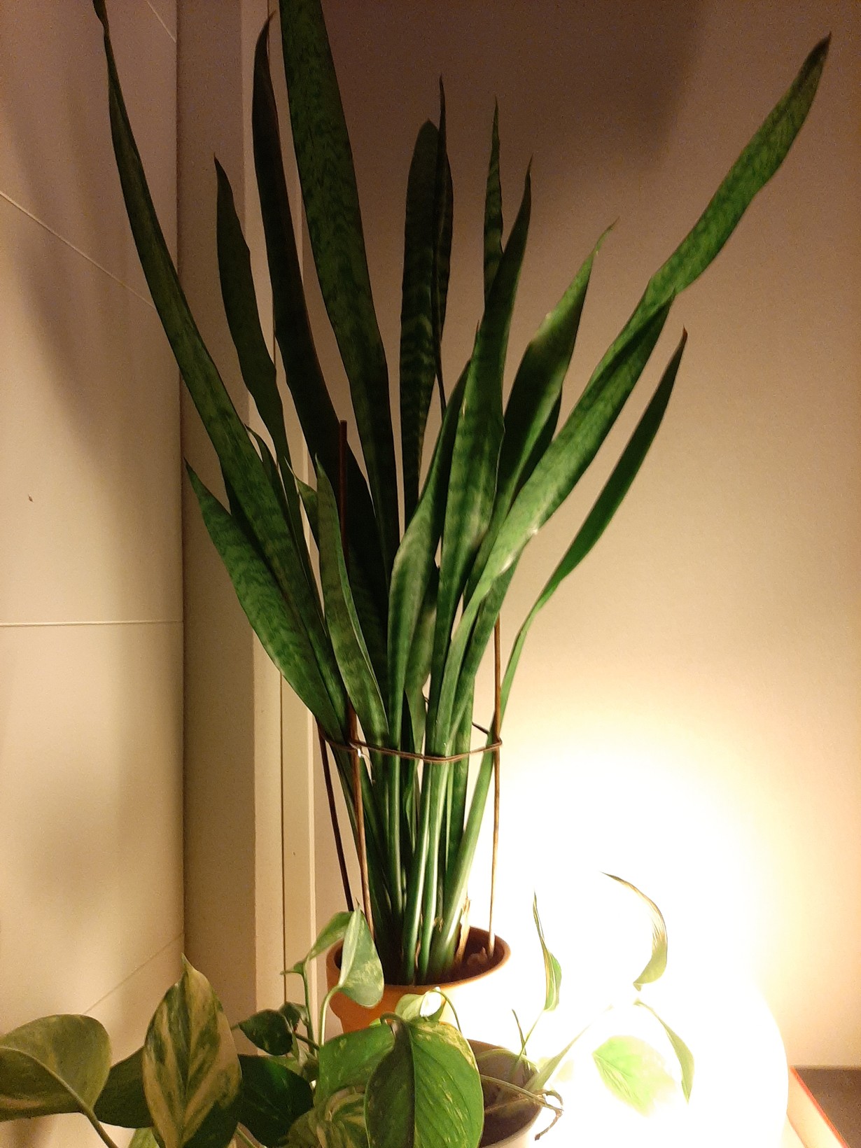 Tämä kasvi on saatu roskalavaryhmästä. Se on samaa tyyliä lapsuuteni ikkunalautojen kukkaryhmien kanssa. Anopinkielen lisäksi äidin ikkunalla kasvoi vanhapoika, aaroninparta ja asparaguksia, kuten hienohelma. Myöhemmin äitini kasvatti myös santpaulioita jotka kukkivat valtoimenaan. Itsekin viihdyn kodissa jossa on eläviä kasveja.