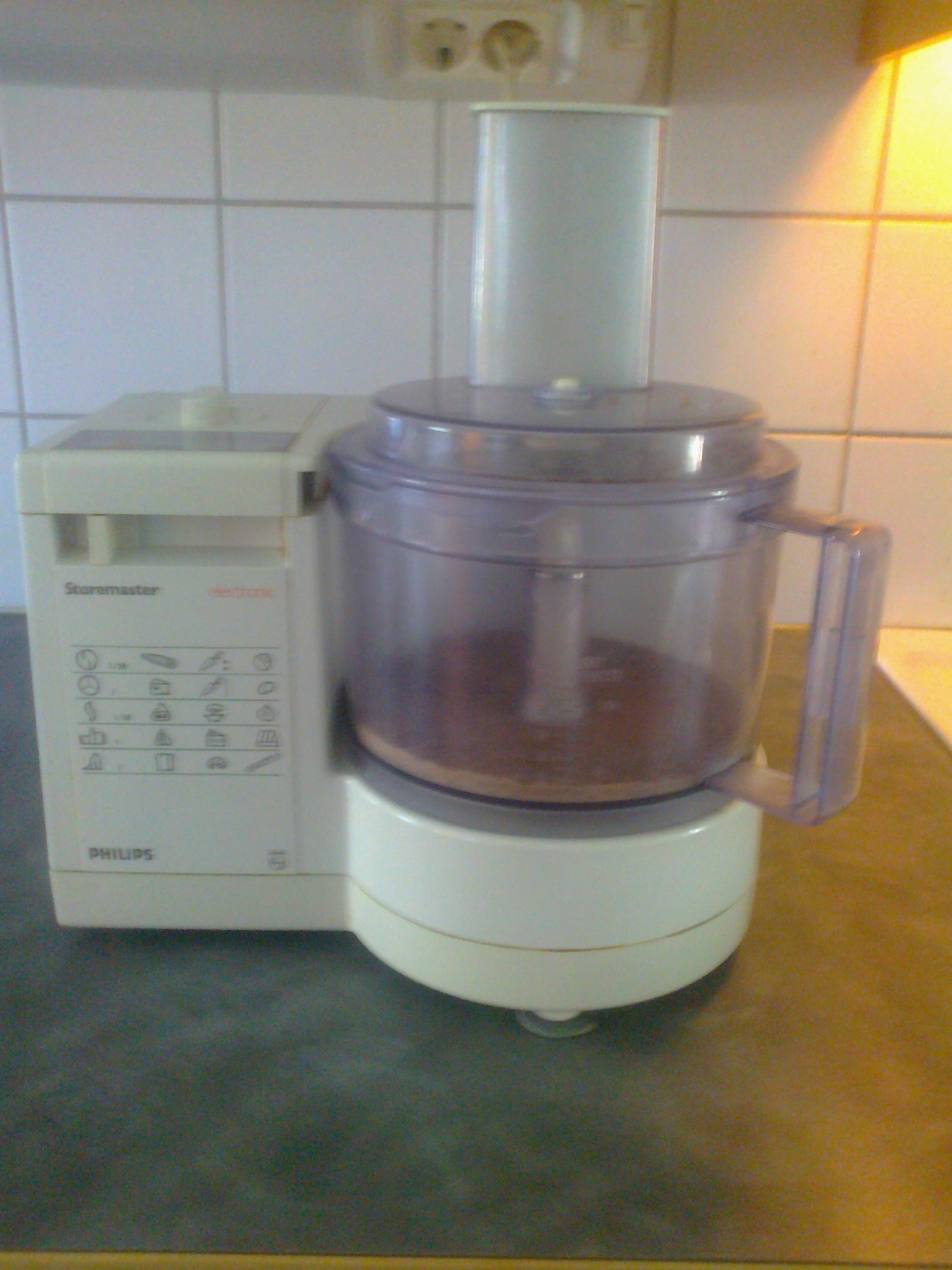 Tässä Philips Storemaster yleiskoneeni. Ostin sen joskus 80-luvun puolivälissä ja hyvin pelittää edelleen. Viimeeksi tein sillä korppujauhoja lihapullataikinaa varten.