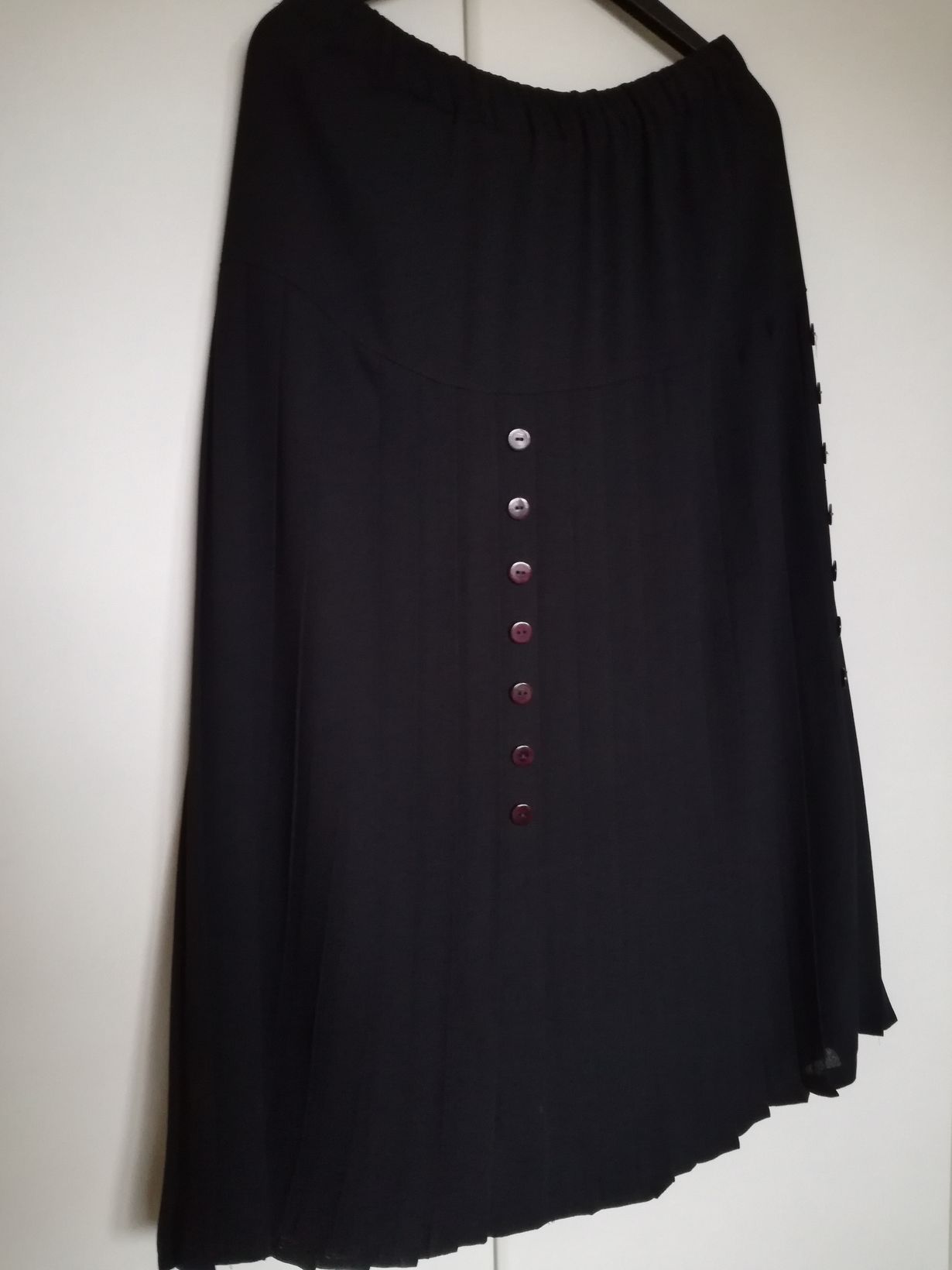 Luottohame 25 vuoden takaa. Joustava vyötärönauha antaa mahdollisuuden laskea jakun alla lantiolle= nilkkapituinen. Ja vekit pysyy...