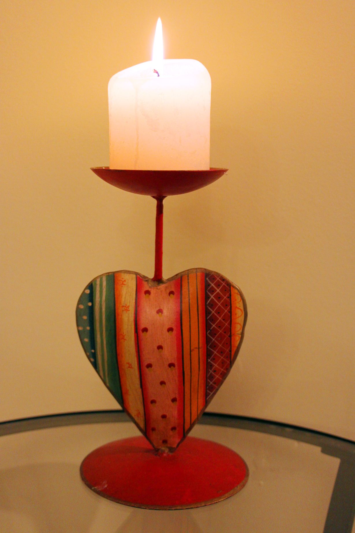 Olin ystäväni luona Saksan Wuppertalissa ja kiertelimme lahja- ja käsityöläismyymälöitä. Kun näin tämän ihanan värisen kynttiläjalan, se oli pakko tuoda kotiin!