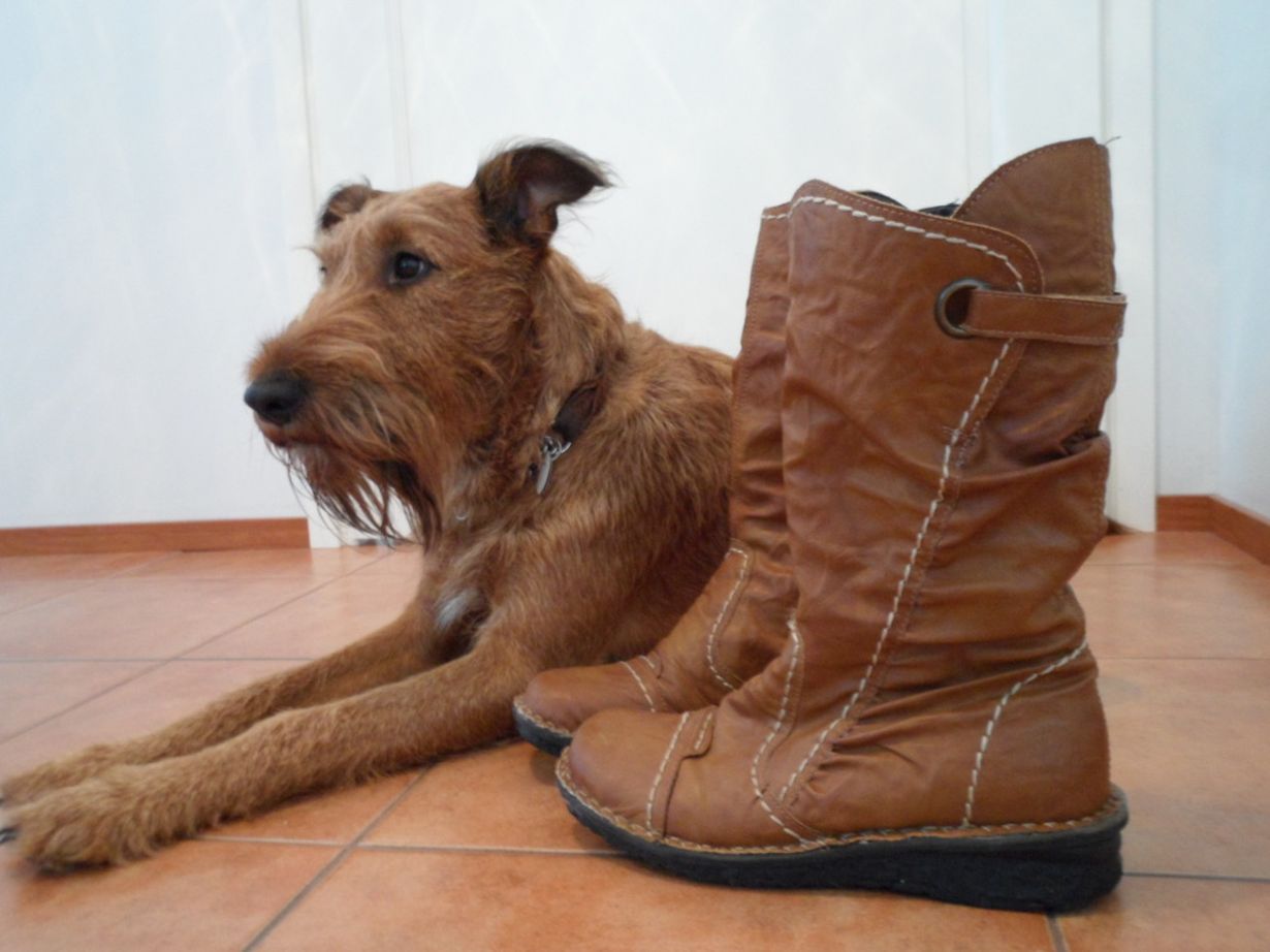 Kuvassa tämän hetken lempikenkäni sekä oma lempikoirani. Saapikkaat valitsin värin perusteella, jotta olisimme lenkillä tyylikkäinä. Todellisuudessa värien yhtäläisyys on sattumaa vain. Kengät ovat jalassa todella mukavat ja ulkonäkökin miellyttää silmääni. Sain kengät halvemmalla koska ovat eri paria. Tämä ei tosin minua ole häirinnyt koska uskon jalkojenikin olevani eri paria.
