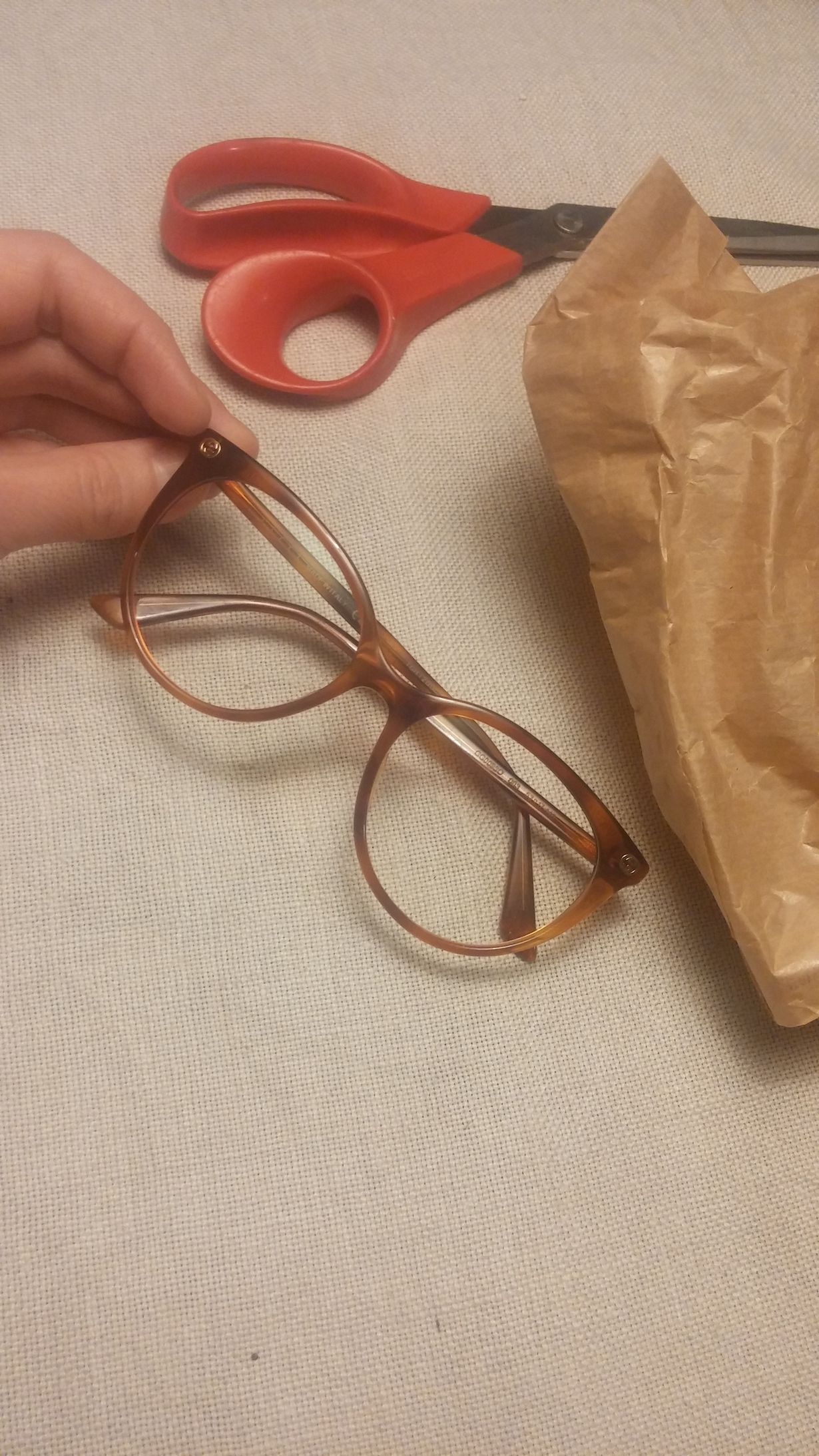 Huomasin lasien tarpeen 31-vuotiaana. Käytän näitä laseja askarrellessa ja ulkoillessa. Menin hakemaan mustia kehyksiä, mutta toisin kävi. Isot, meripihkan väriset kehykset olivat silmälasiliikkeen myyjän yllättävä suositus ja ihastuin niihin heti. Mies sanoo näitä sihteerikkölaseikseni.