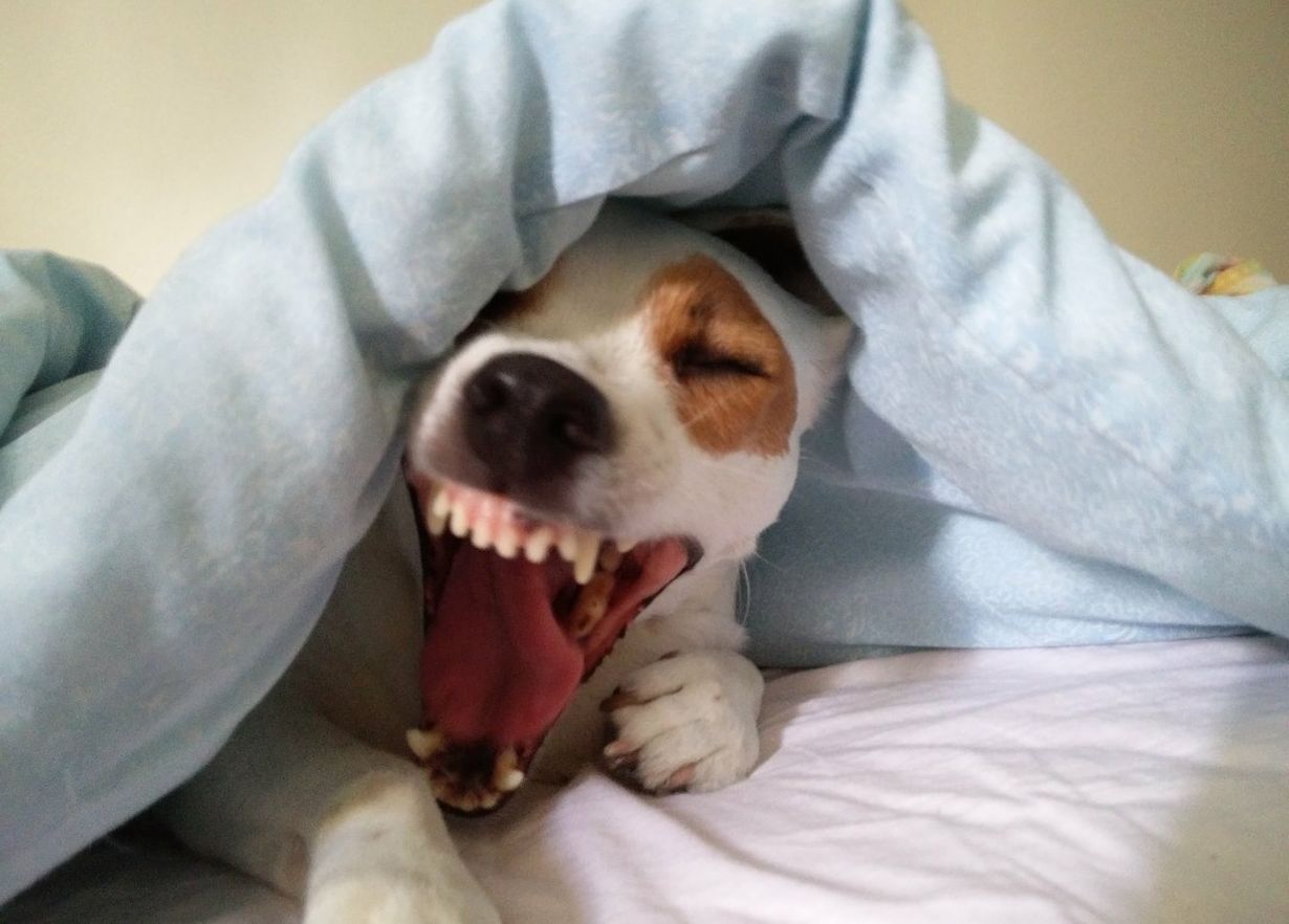 Kuvaa unikaverisi – voit voittaa Silja Linen lahjakortin! Väsynyt Hymy Hymyhelmi 12.9.2018 klo 22:37 Unikaveri, jackrusselin terrieri Hymy, heräilee peittopesästään ison haukotuksen kera.