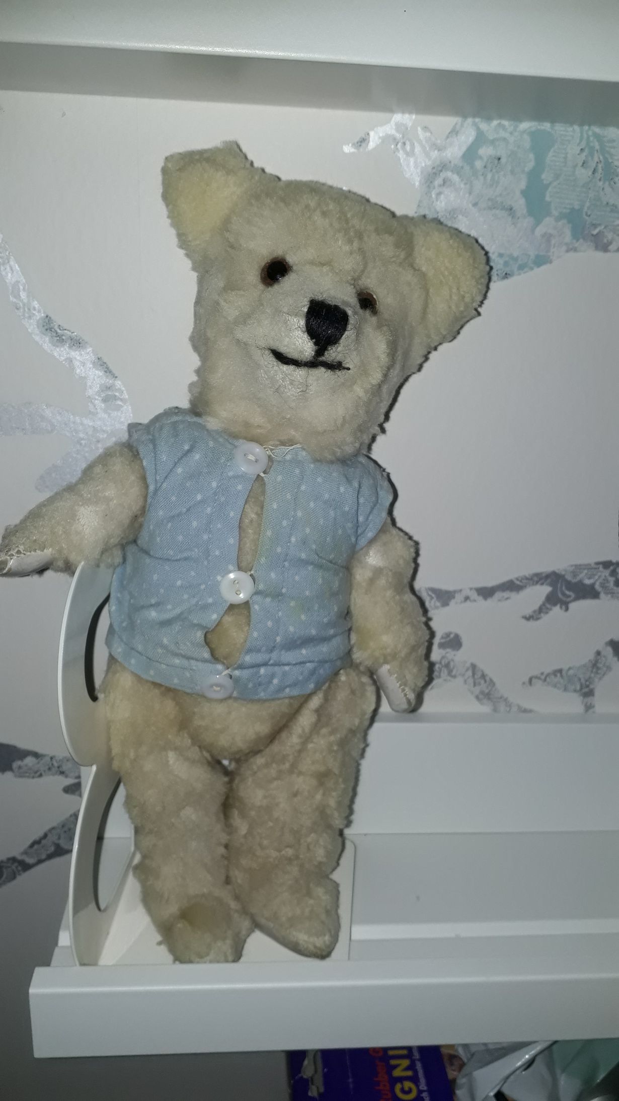 Tämä paljon rakastettu nalle on aitoa turkista ja on jo 66v, sain sen ihan vauvana. Vähän alkaa näkyä kulumia, kuten omistajassakin.