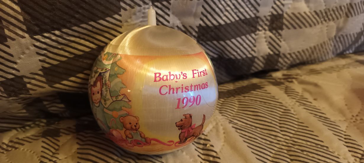 Saimme tämän ihanan koristeen ystäviltämme, jotka muuttivat Amerikkaan v 1989. Kun kuulivat että vauva on meille tulossa, lähettivät vauvan synnyttyä lahjapaketin, jossa oli mm tämä ihana joulukoriste. Valitettavasti toinen lahjan antajista katselee joulua sieltä jostain, pilven reunalta...Siksikin, tämä koriste on ja pysyy aina joulussamme, myös joulukoristeen saajalle, joka on nyt 33 v. 💗