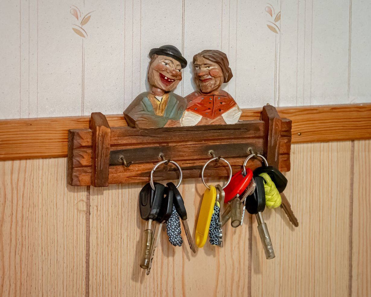Puusta veistetty avainnaulakko tuli talon irtaimiston mukana. Tietäisipä vaan kuka on osannut noin taitavasti veistää ja milloin/missä? Hahmojen päitä voi liikutella, mutta yleensä ne ovat noin - neito saa katsoa "komeaa" ja iloluonteista ylkäänsä posket punaisena ja ihaillen. :D