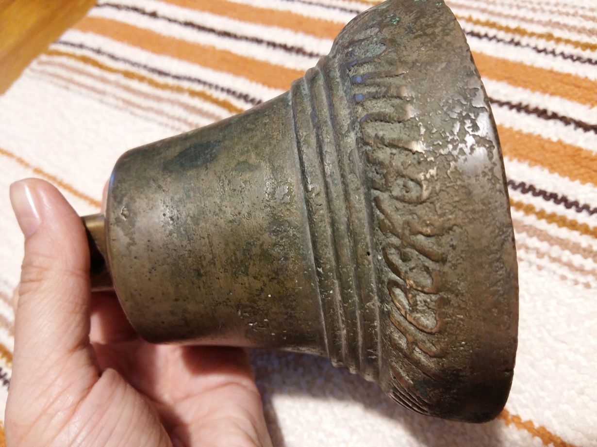 Aisakellossa on kyrillistä tekstiä reunassa. Se on niin vanha, ettei 40-luvulla syntynyt isänikään tiedä, milloin kello on sukuumme tullut.