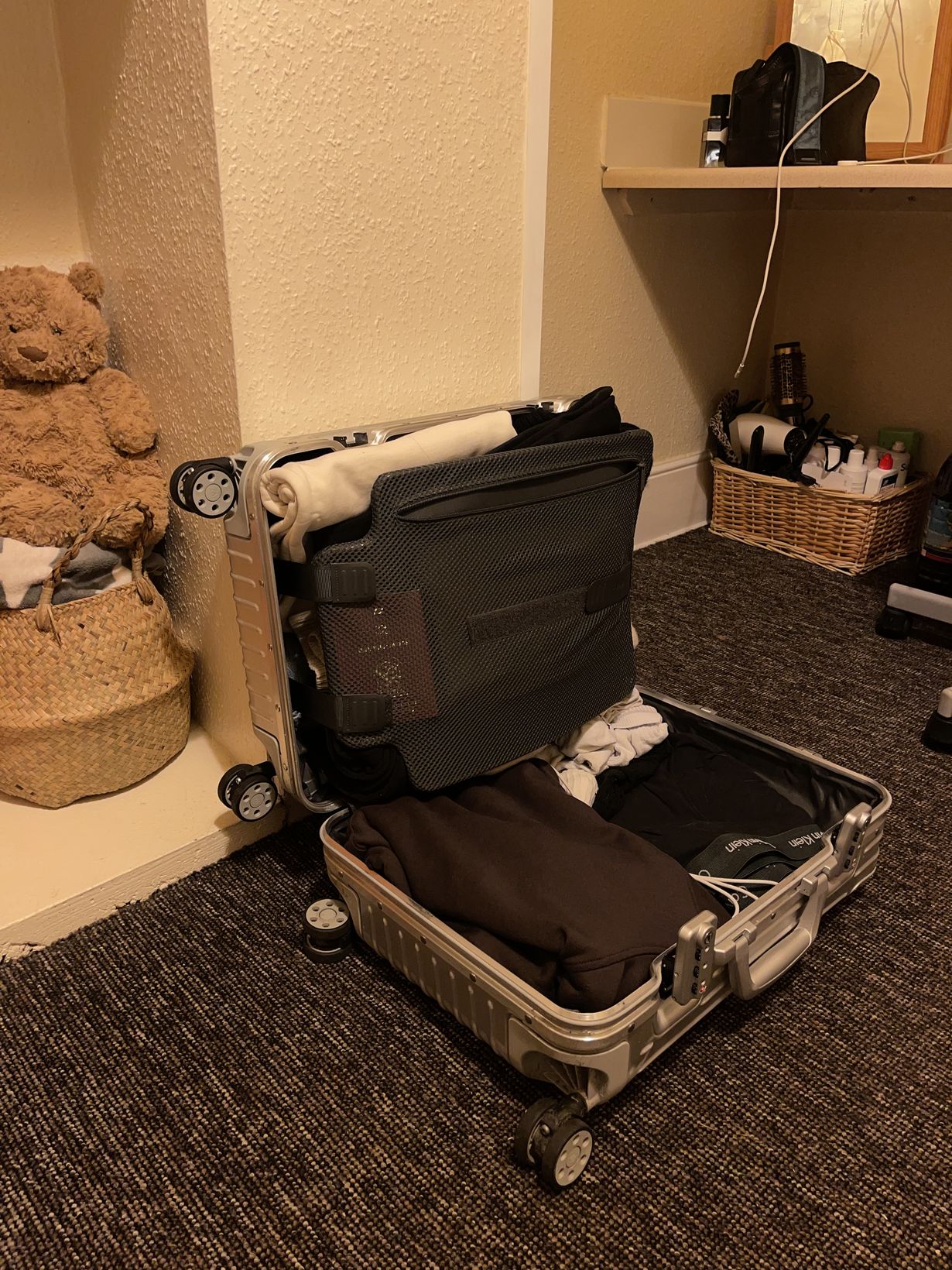 Carry-on matkalaukku pursuaa yrittäessäni matkustaa kevyesti. Jo kolmas reissu Exeteriin Englannissa, jossa tyttöystäväni opiskelee.