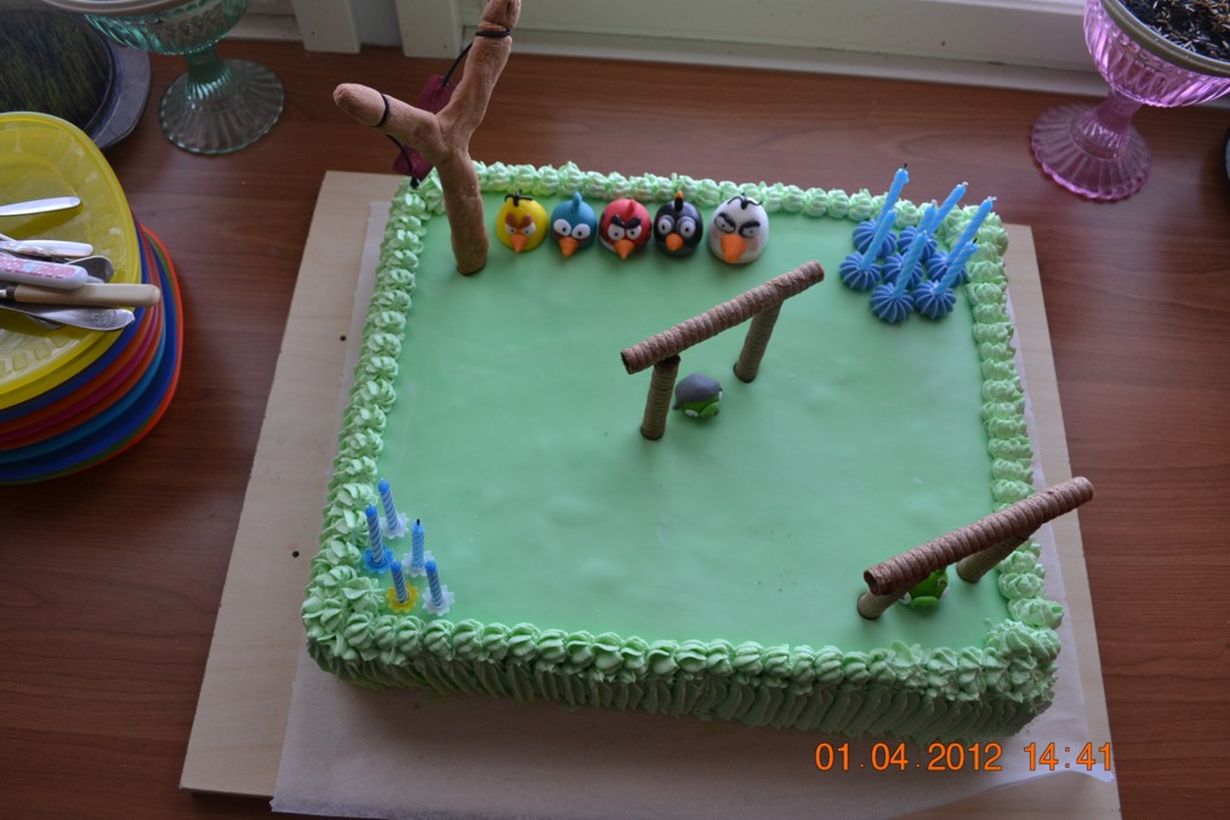 Pojat täyttivät 5- ja 7-vuotta. He saivat yllätyksekseen ihannoimansa Angry Birds -kakun. Yllätys oli melkoinen, kun salassa sokerimassasta muotoilemani possut ja linnut pyrähtivät pelikentälle. Yllätys oli onnistunut ja pojat onnensa kukkuloilla.